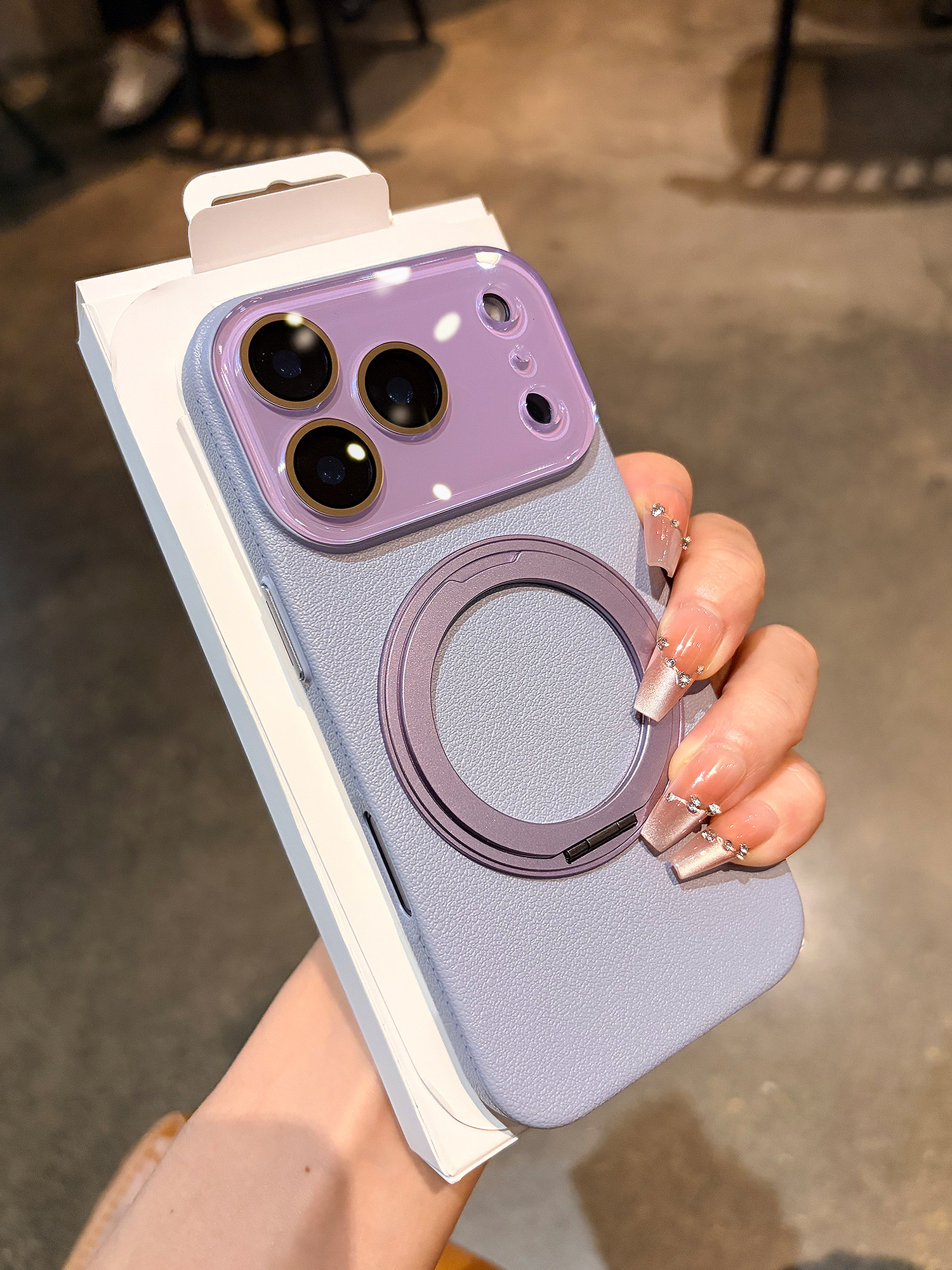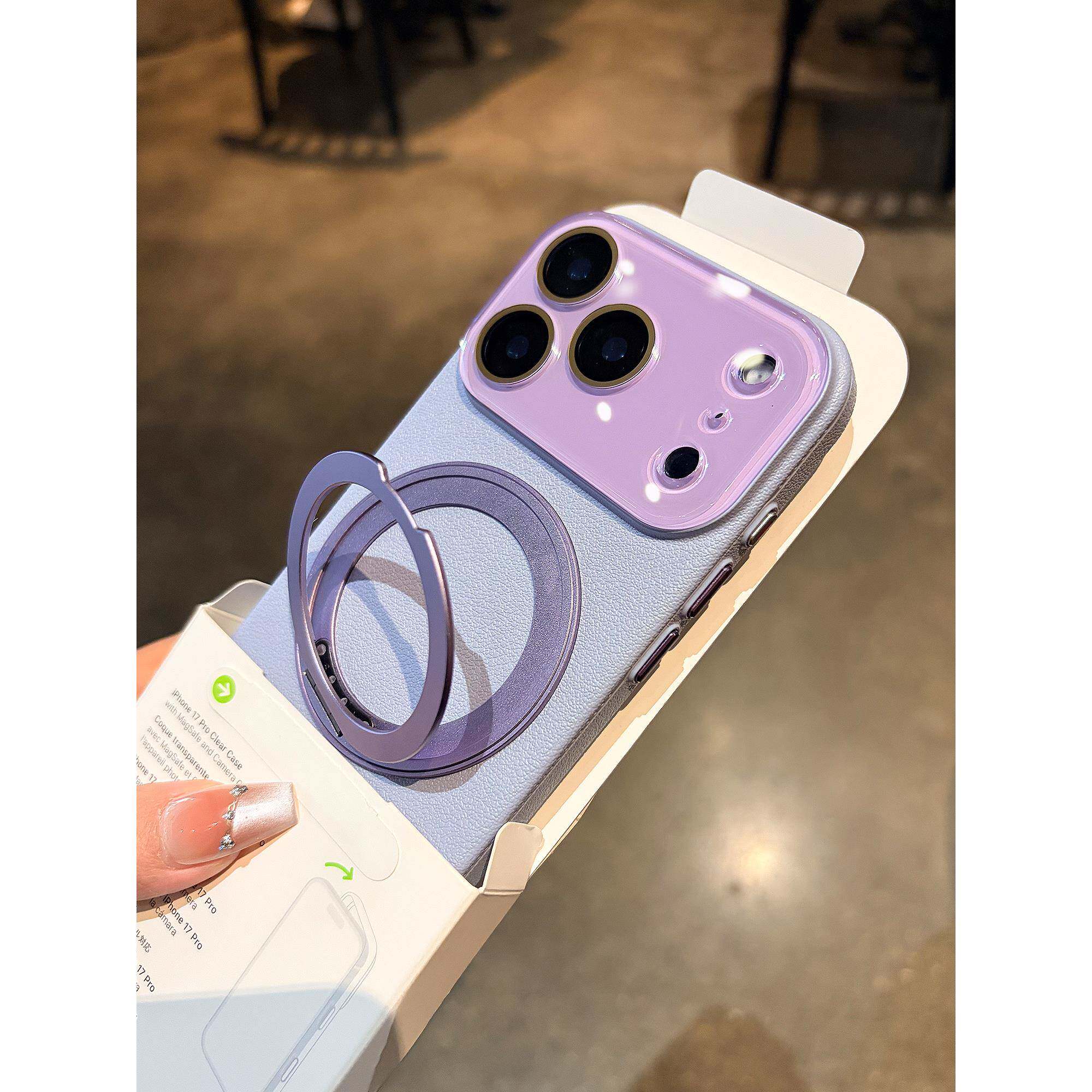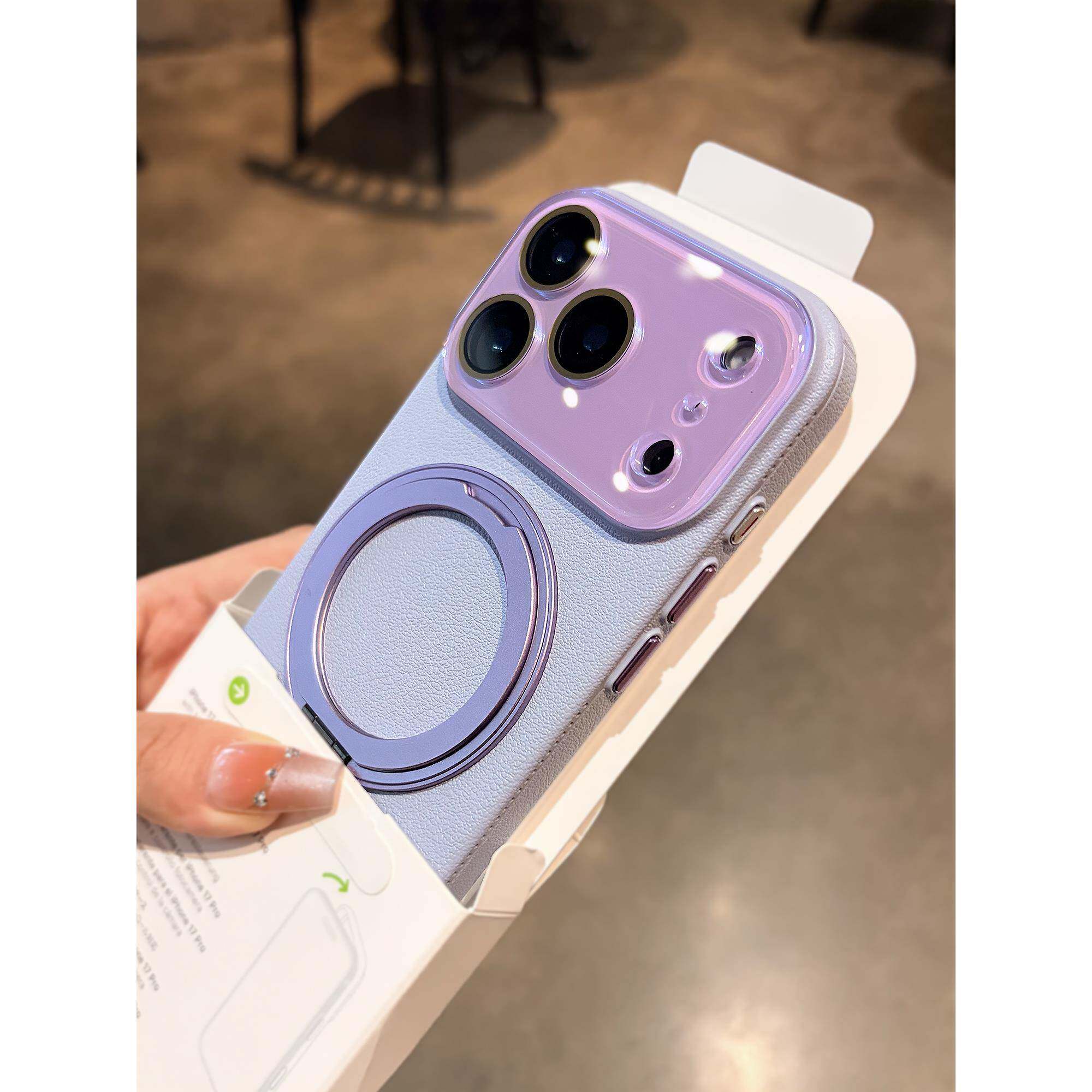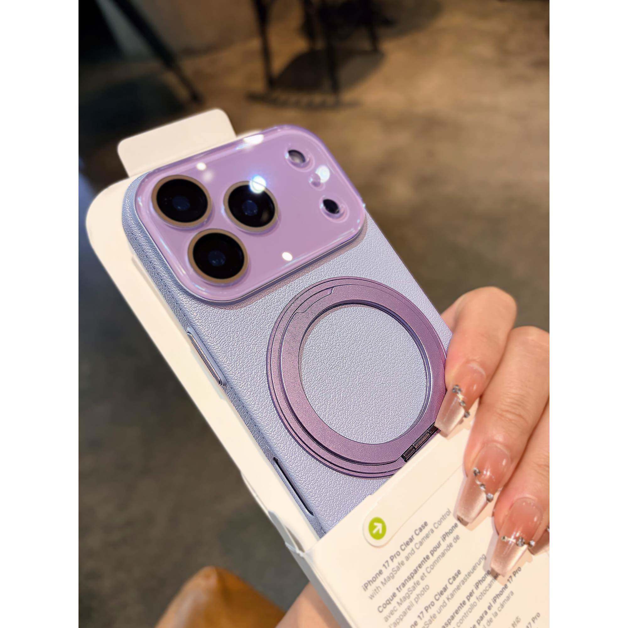 旋转磁吸支架适用苹果17promax iphone手机壳新款高级感荔枝纹外壳16Pro带镜头膜女款15PM全包14防摔13保护套