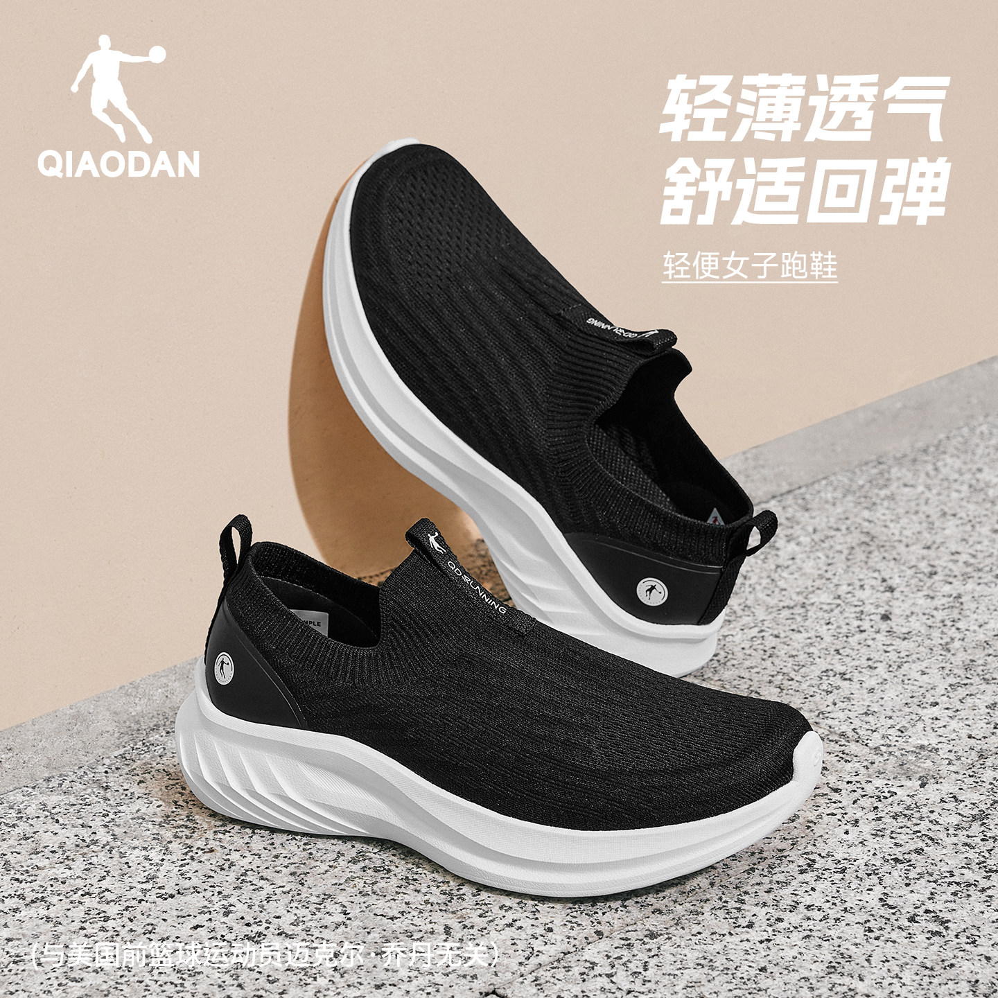 乔丹一脚蹬黑色健步鞋夏季网面透气轻便运动鞋女款减震妈妈跑步鞋