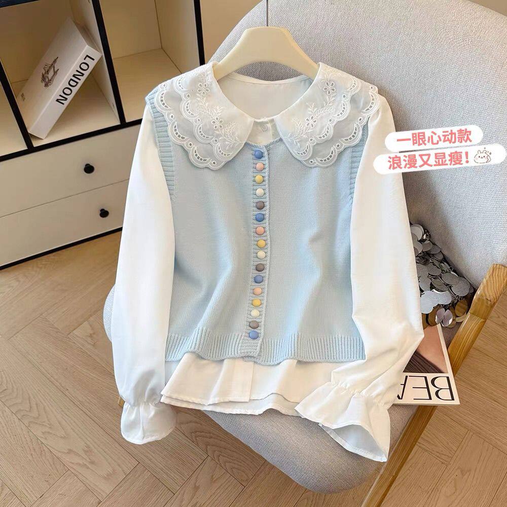 女童春季新款套装2026初中生女装针织马甲洋气衬衫时髦牛仔裤春装