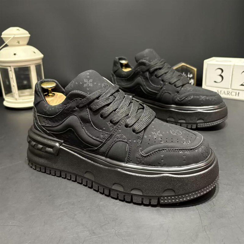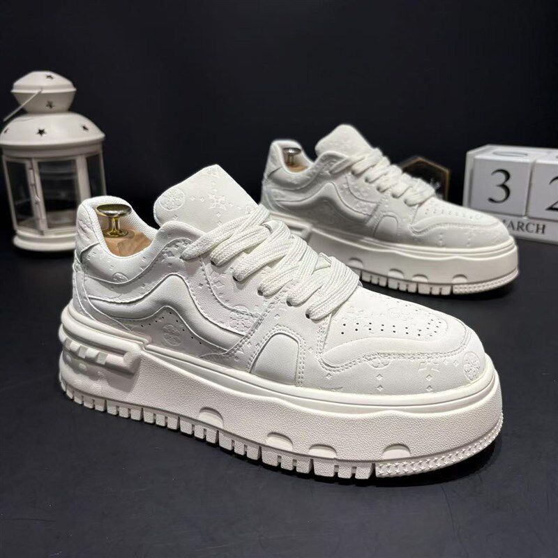 新款男鞋潮流印花软底舒适板鞋厚底增高春秋小白鞋通勤学院风休闲