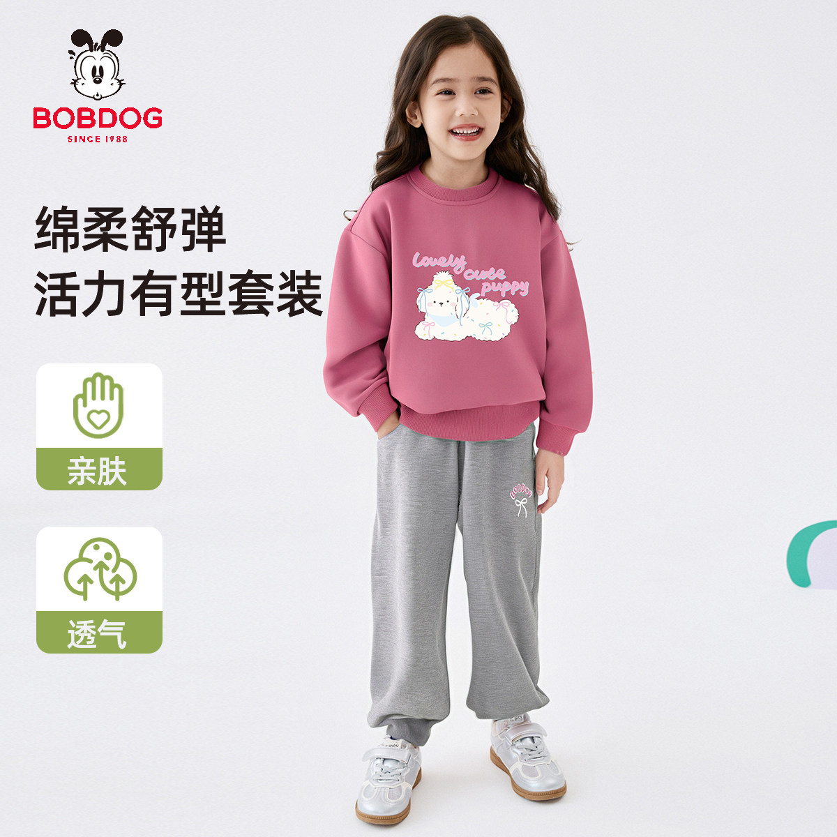 巴布豆童装女童秋装套装2025新款洋气时髦圆领卫衣春秋运动两件套