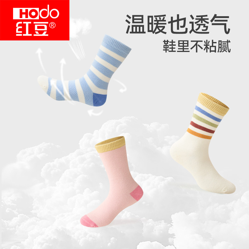 红豆儿童袜子春秋新款男童女童中筒无骨棉袜四季大童宝宝运动长袜