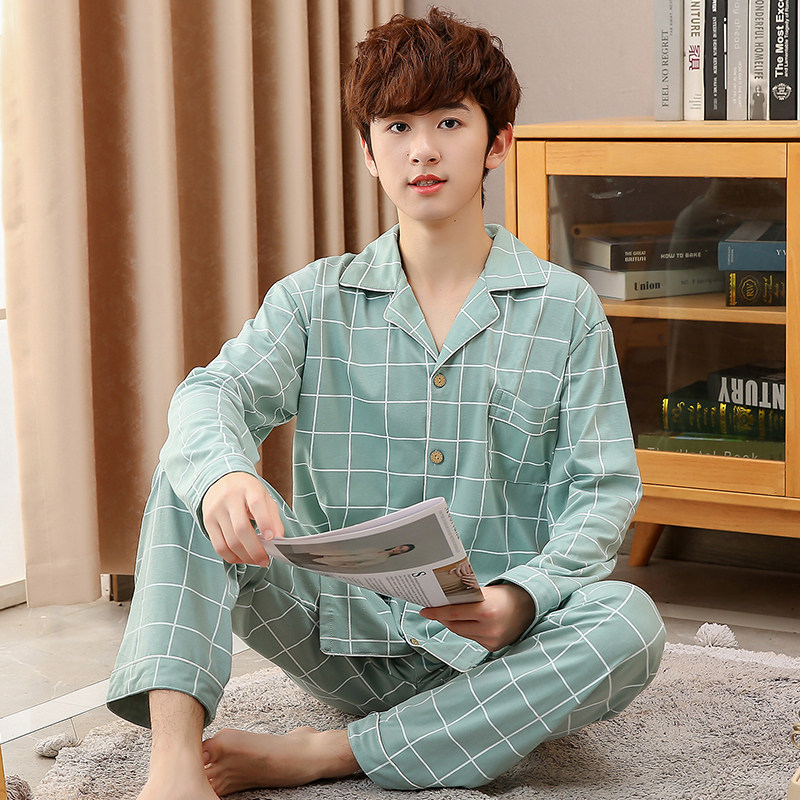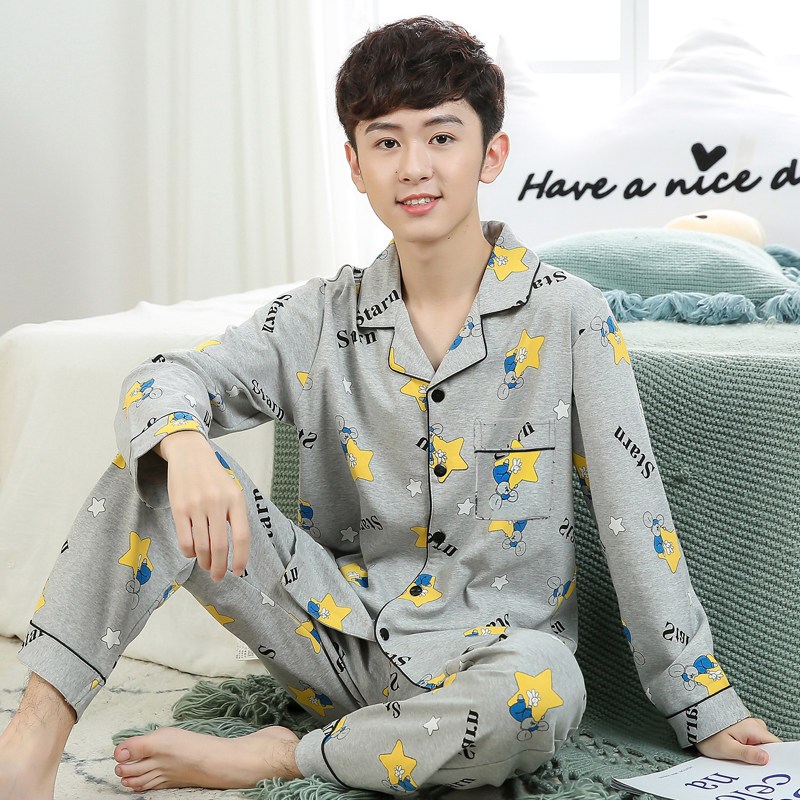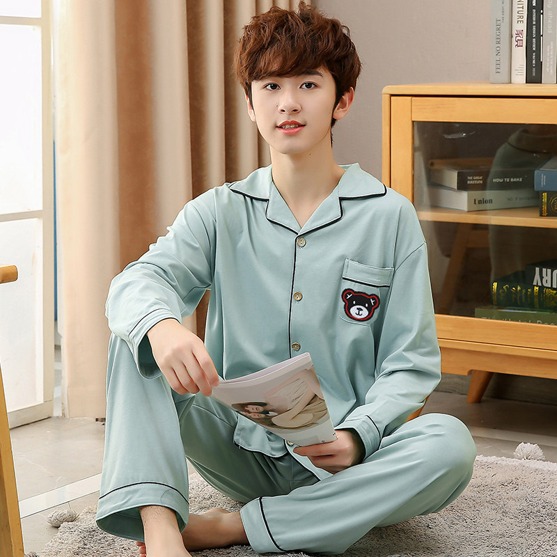 男大童睡衣春秋纯棉薄款长袖青少年15岁男孩初中生男童全棉家居服