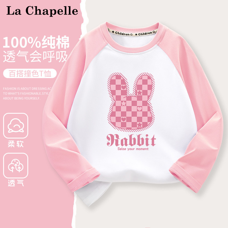 拉夏贝尔女童长袖t恤纯棉春季2026新款儿童内搭上衣小女孩打底衫