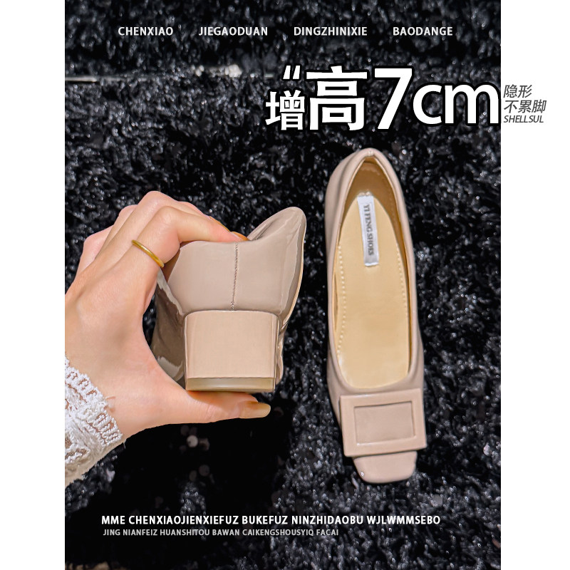 不累脚!2026春夏隐形内增高7CM小个子显瘦方扣粗跟玛丽珍单鞋女