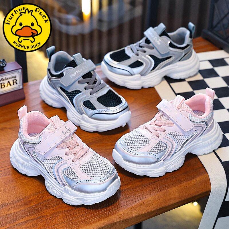 小黄鸭儿童运动老爹鞋女童2026春夏季新款超轻网鞋中大童透气网面