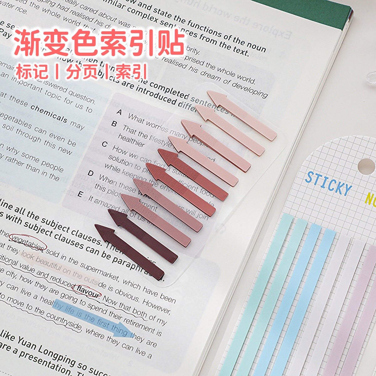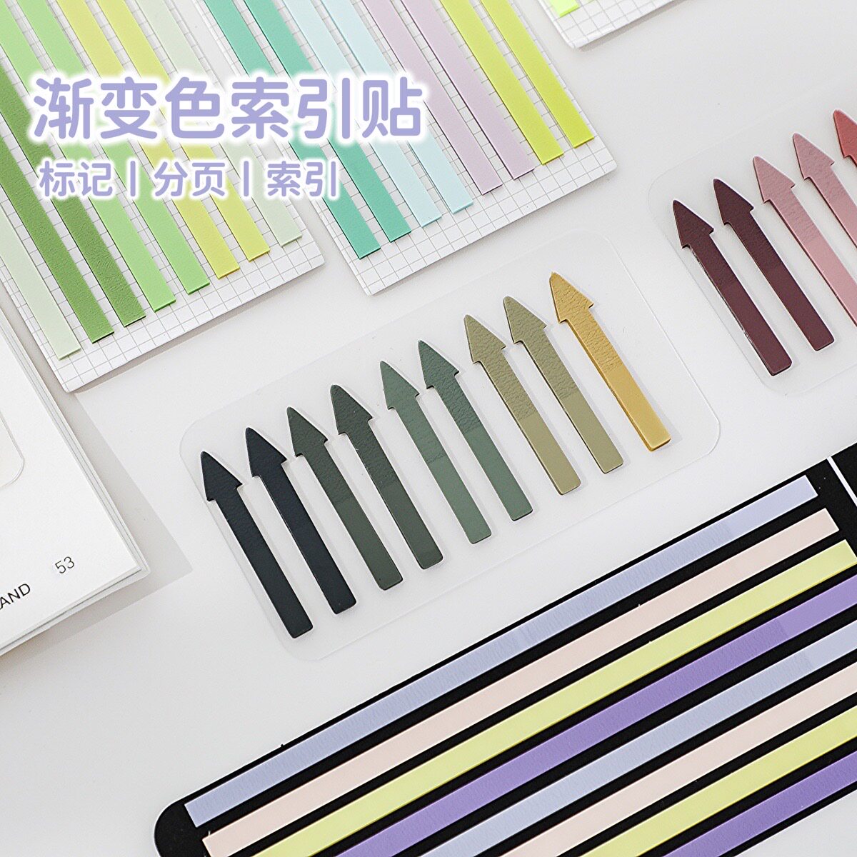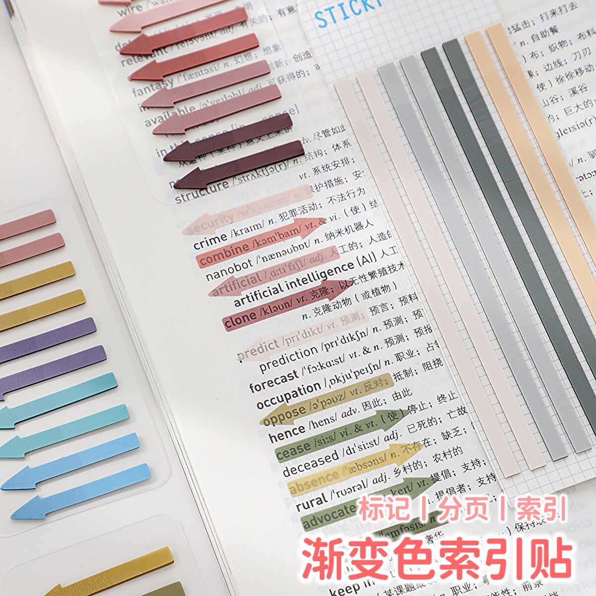 Ki渐变彩色索引贴 重点标记极细荧光箭头便利贴分页贴便签贴纸