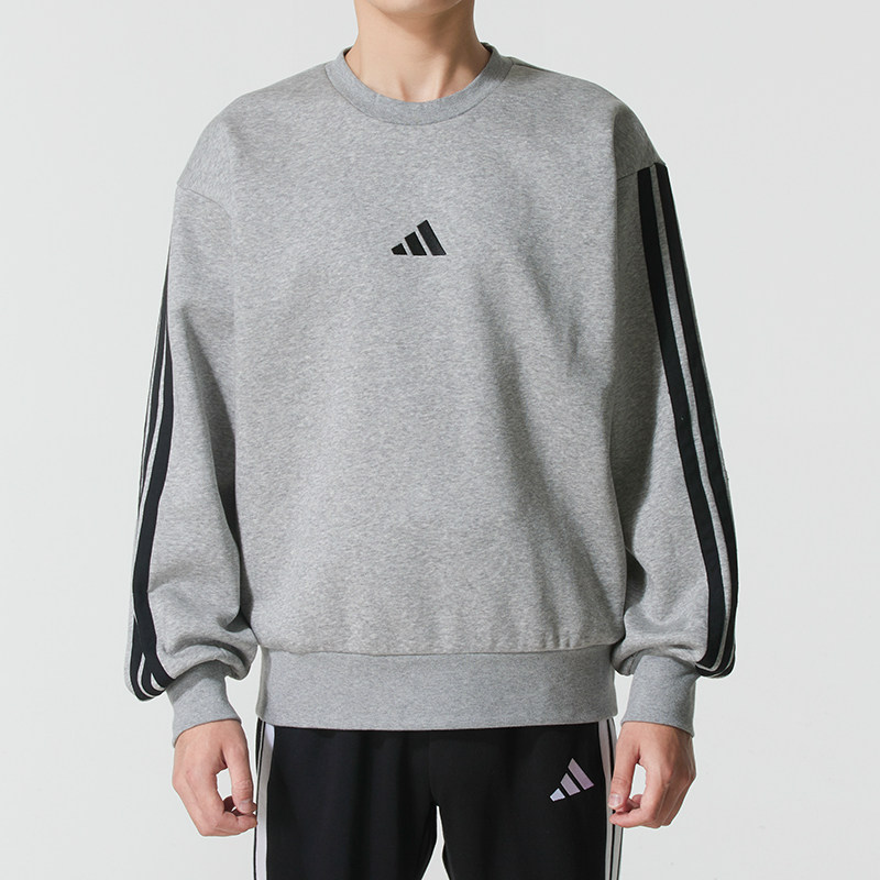 阿迪达斯2026年春季新款男款卫衣/套头衫加绒保暖男士运动衫灰色