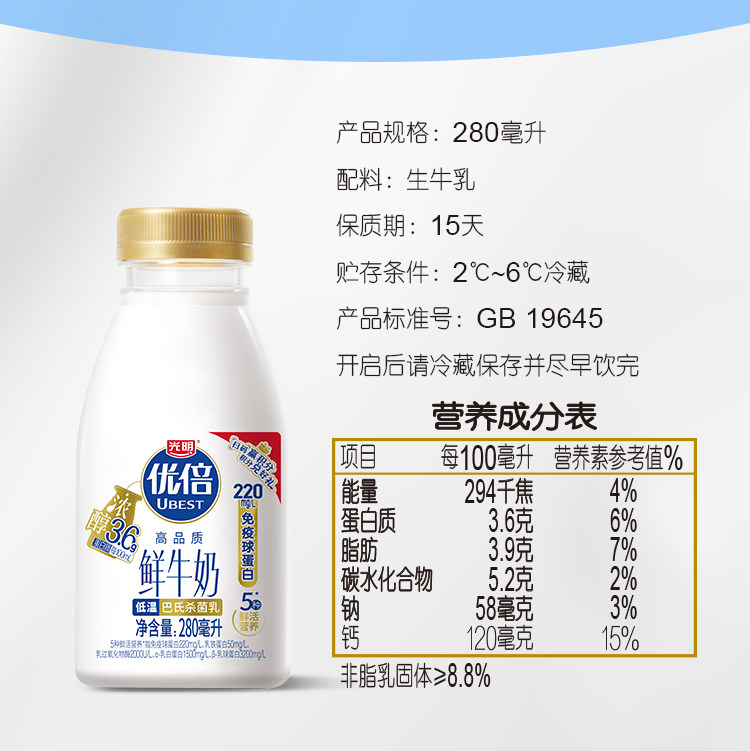 光明优倍鲜牛奶280ml*4瓶+如实酸奶135g*4杯(内赠洋槐蜂蜜)