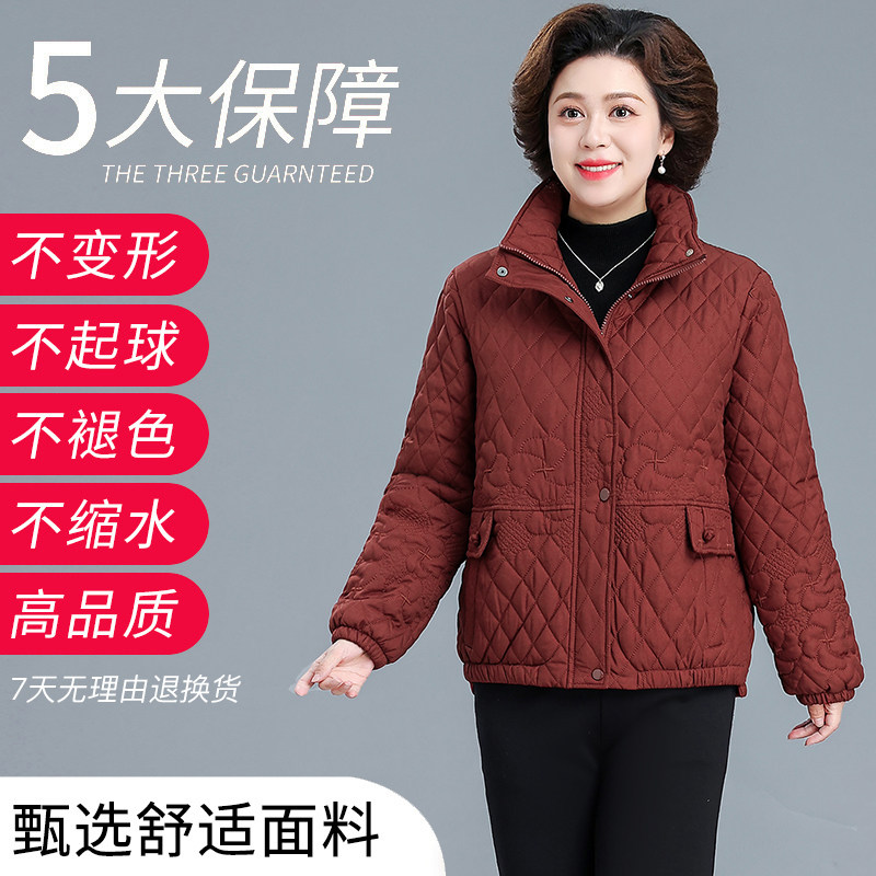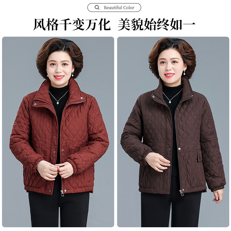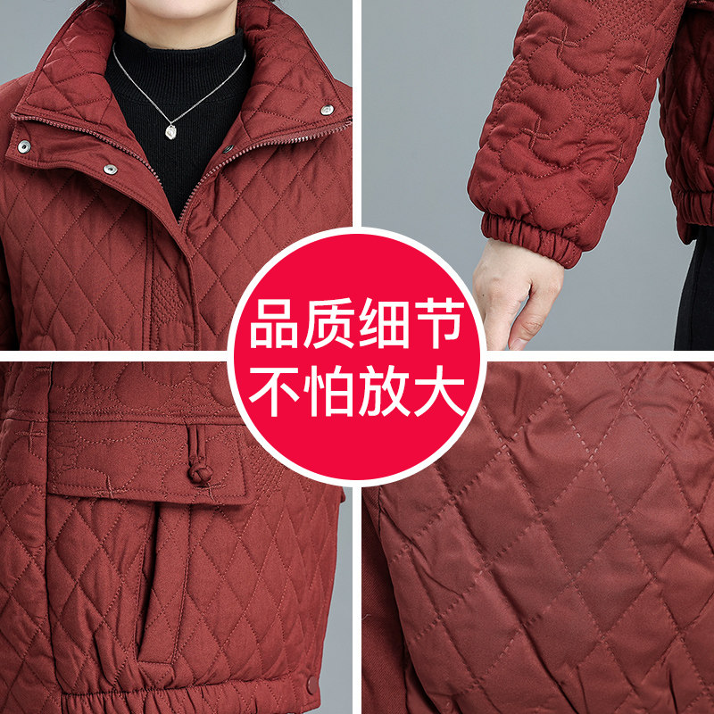 中年妈妈冬装羽绒棉服大码冬季轻薄棉袄中老年人女款秋冬夹棉外套