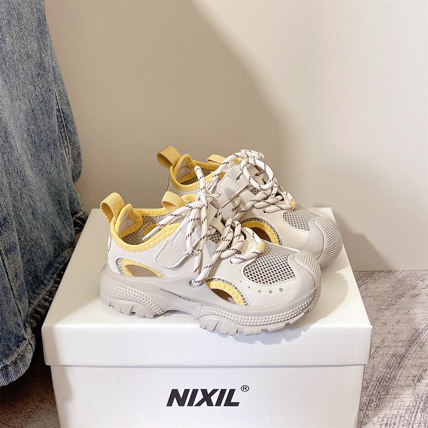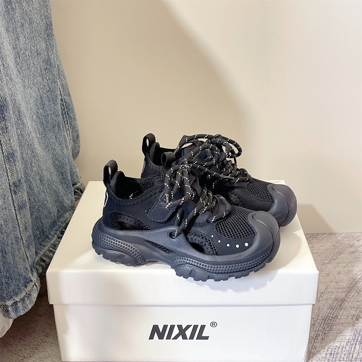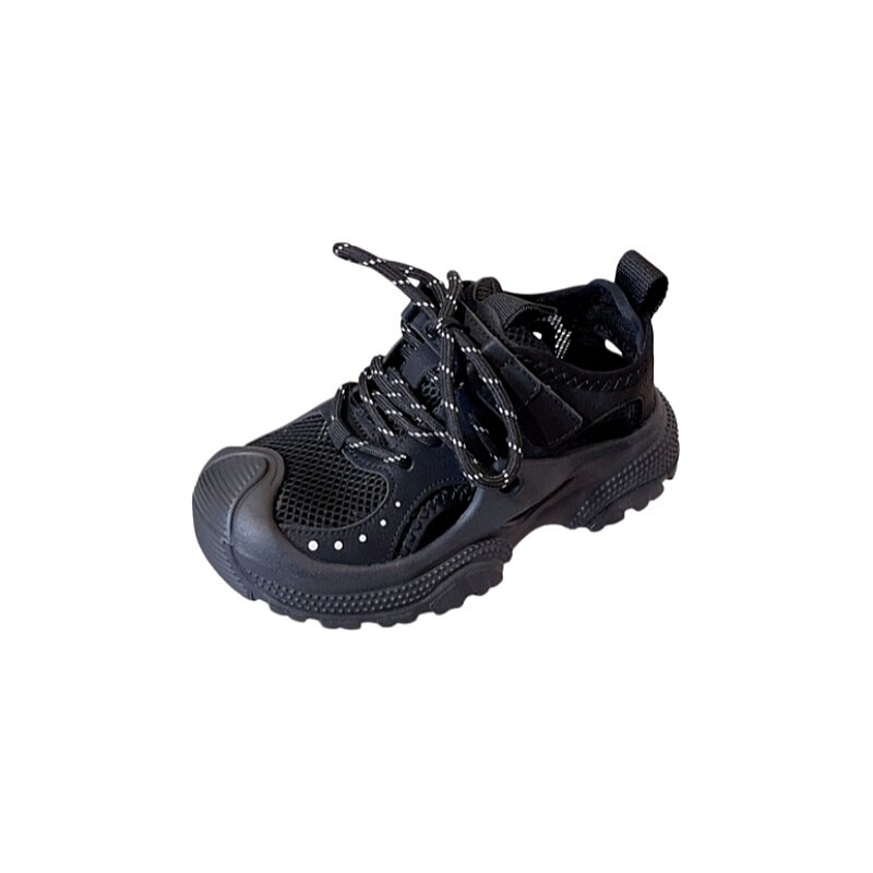 2026年夏季新款男童镂空运动鞋透气轻便防踢网面休闲鞋黑色网鞋潮