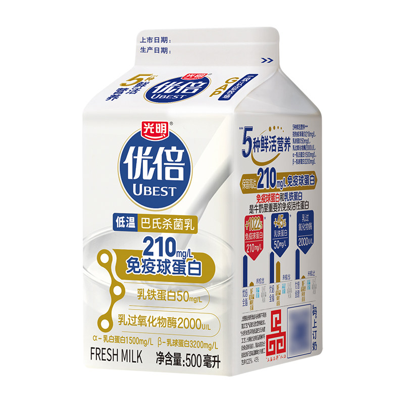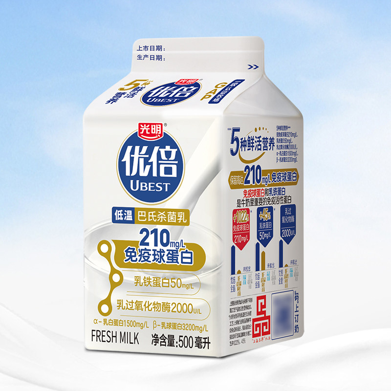 光明优倍鲜牛奶500ml*4瓶巴氏杀菌乳生牛乳全脂新鲜纯牛奶早餐奶