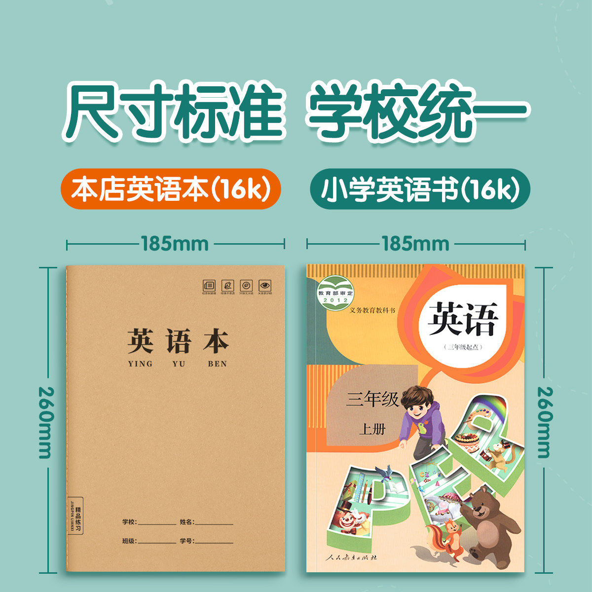 英语本16k小学生英文作业本A5三年级作文本英语簿初中生专用抄写本四五六年级统一牛皮纸练习簿3本加厚听写本
