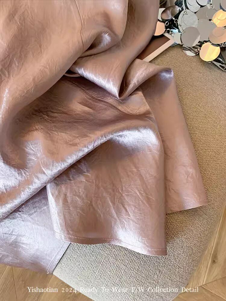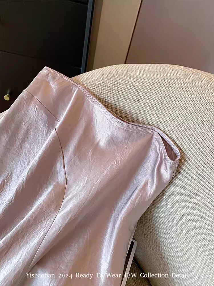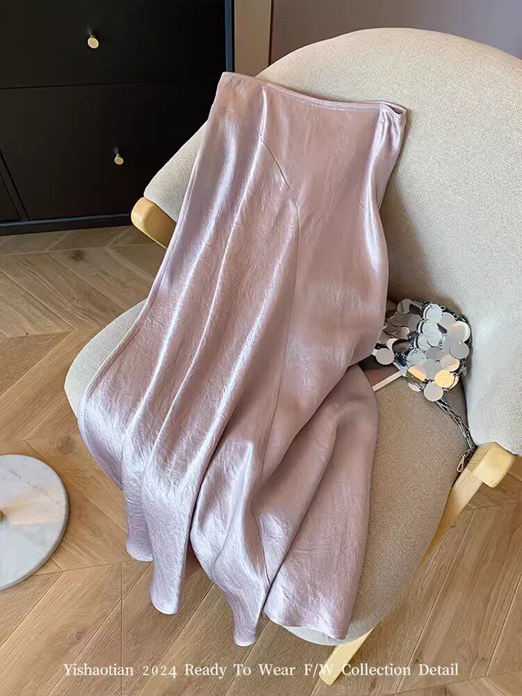 品牌专柜高端女装外贸粉色新中式醋酸缎面裙子半身裙国风中长裙女