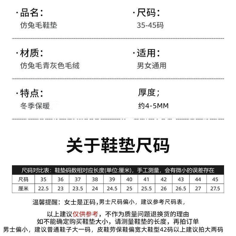 冬季鞋垫加绒加厚保暖毛绒防寒保暖男款防臭透气运动舒适鞋垫女款