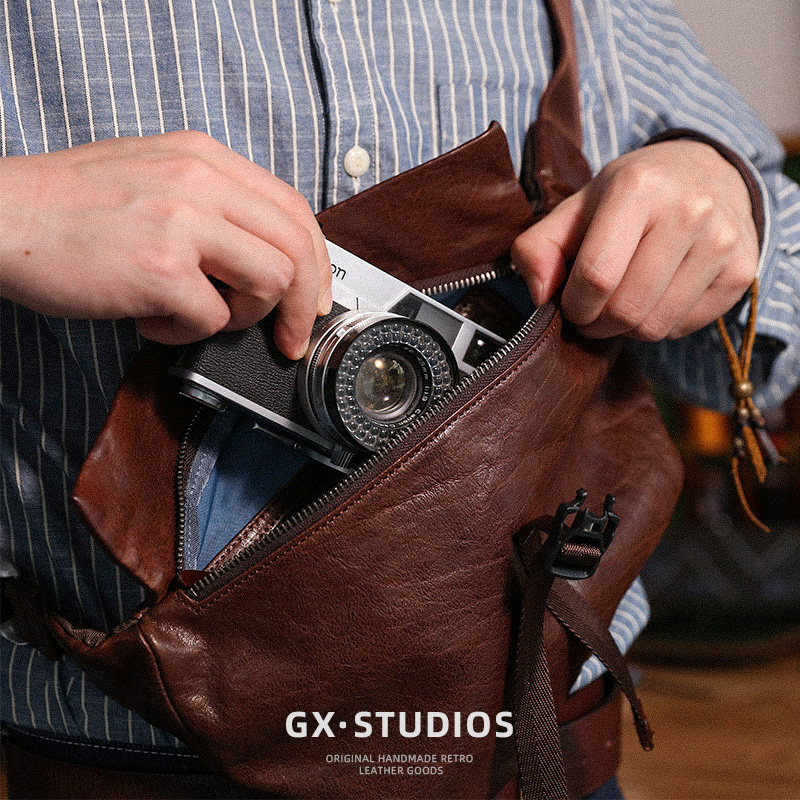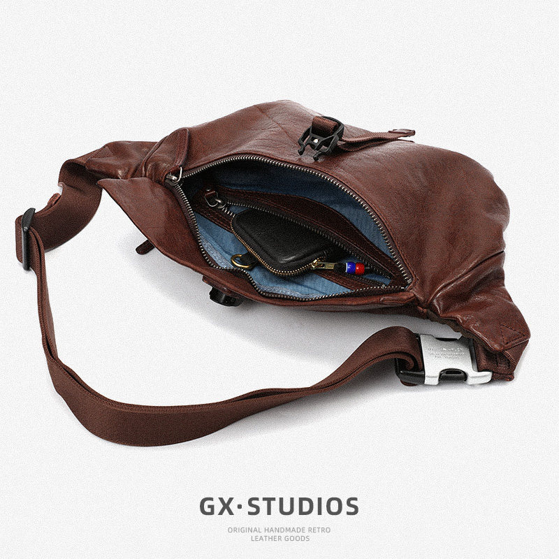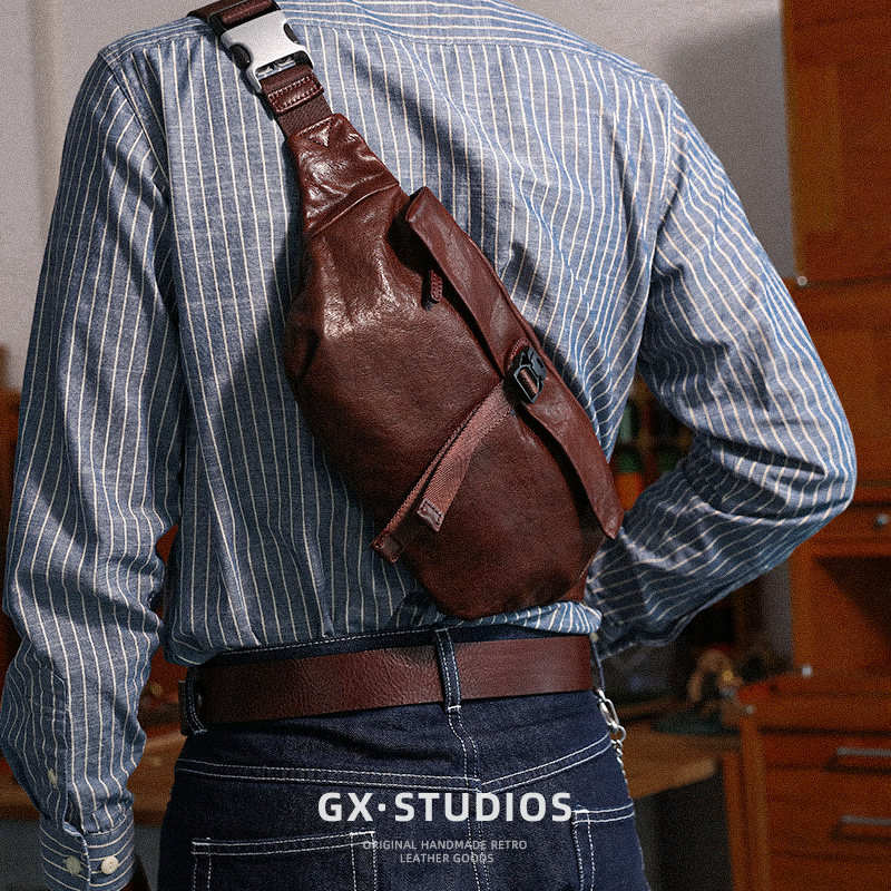 Atelier Leo 胸包男士真皮斜挎包复古纯手工水洗牛皮腰包单肩皮包