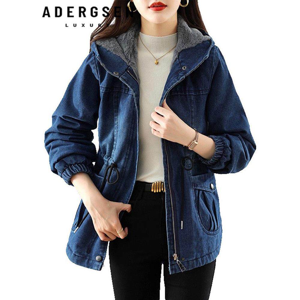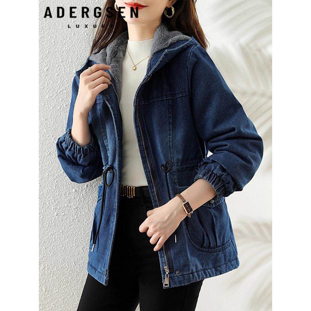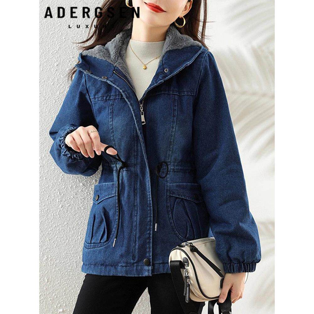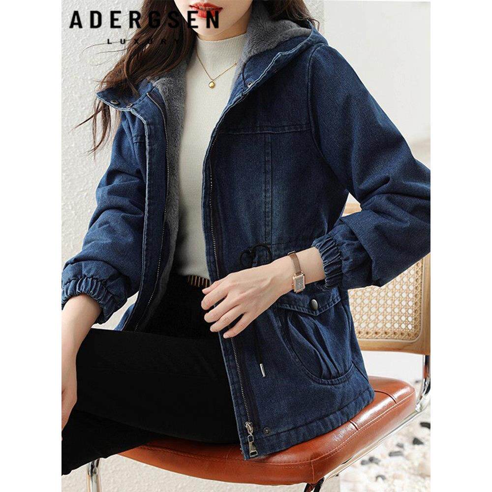 加绒加厚牛仔棉衣女2025秋冬季新款时尚外套洋气宽松连帽收腰棉服