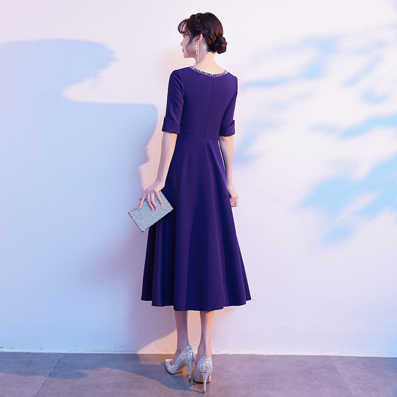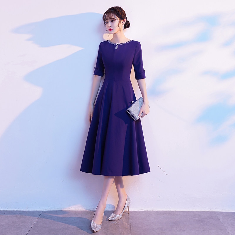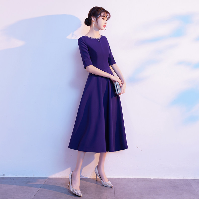 蓝色晚礼服女平时可穿气质宴会高端婚礼妈妈婚宴装连衣裙冬季长袖
