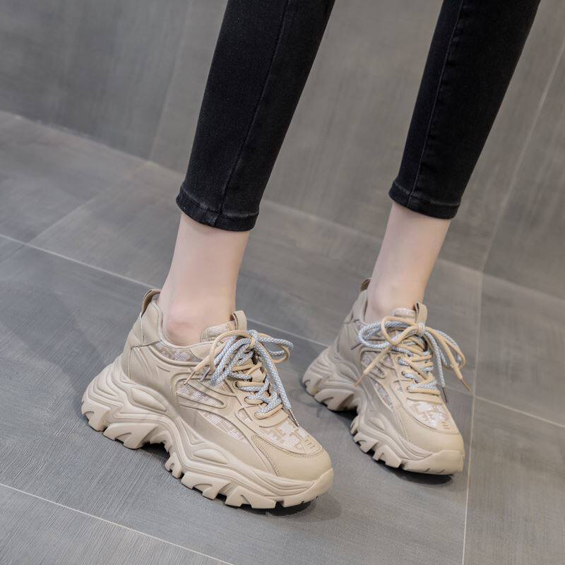 8公分内增高女鞋8cm增高秋冬款显脚小H老爹鞋女杏色小个子轻便加