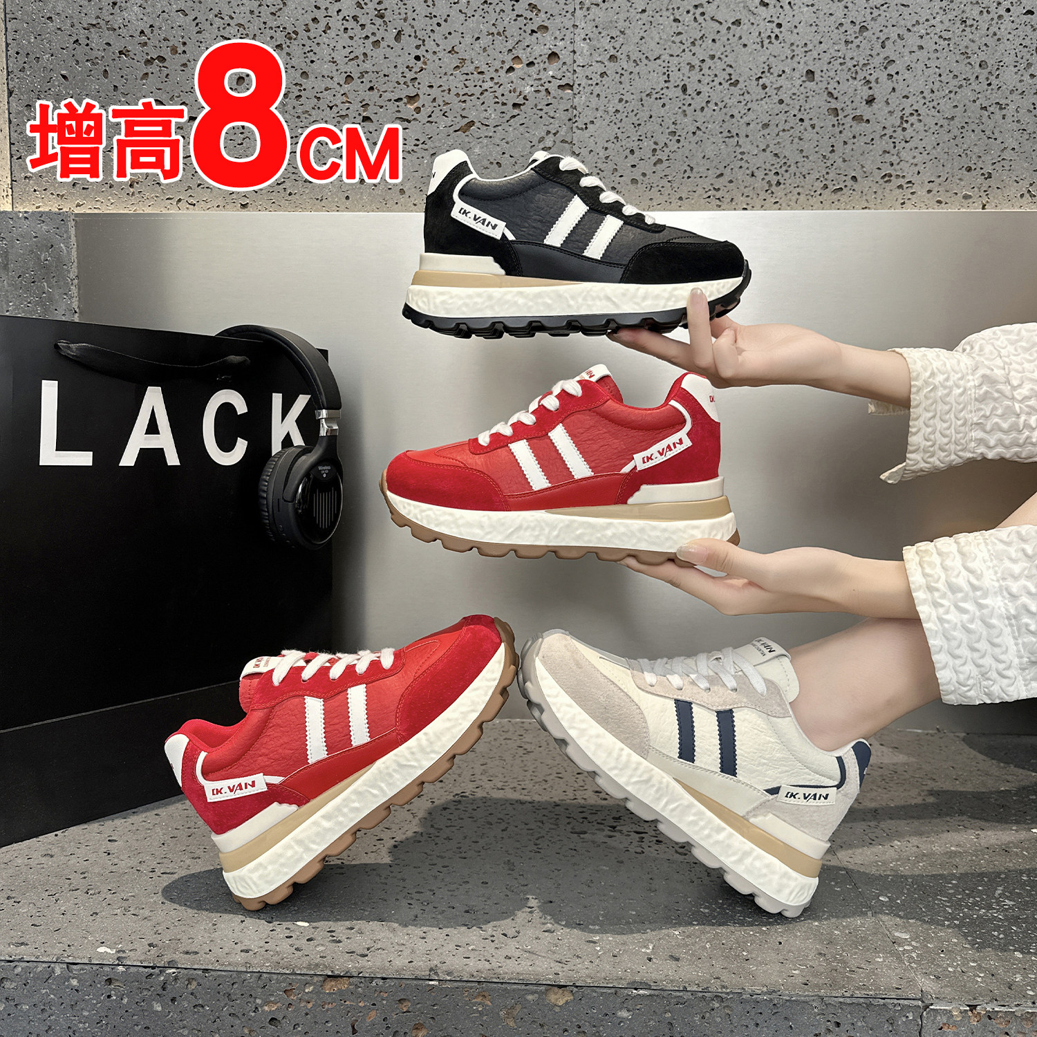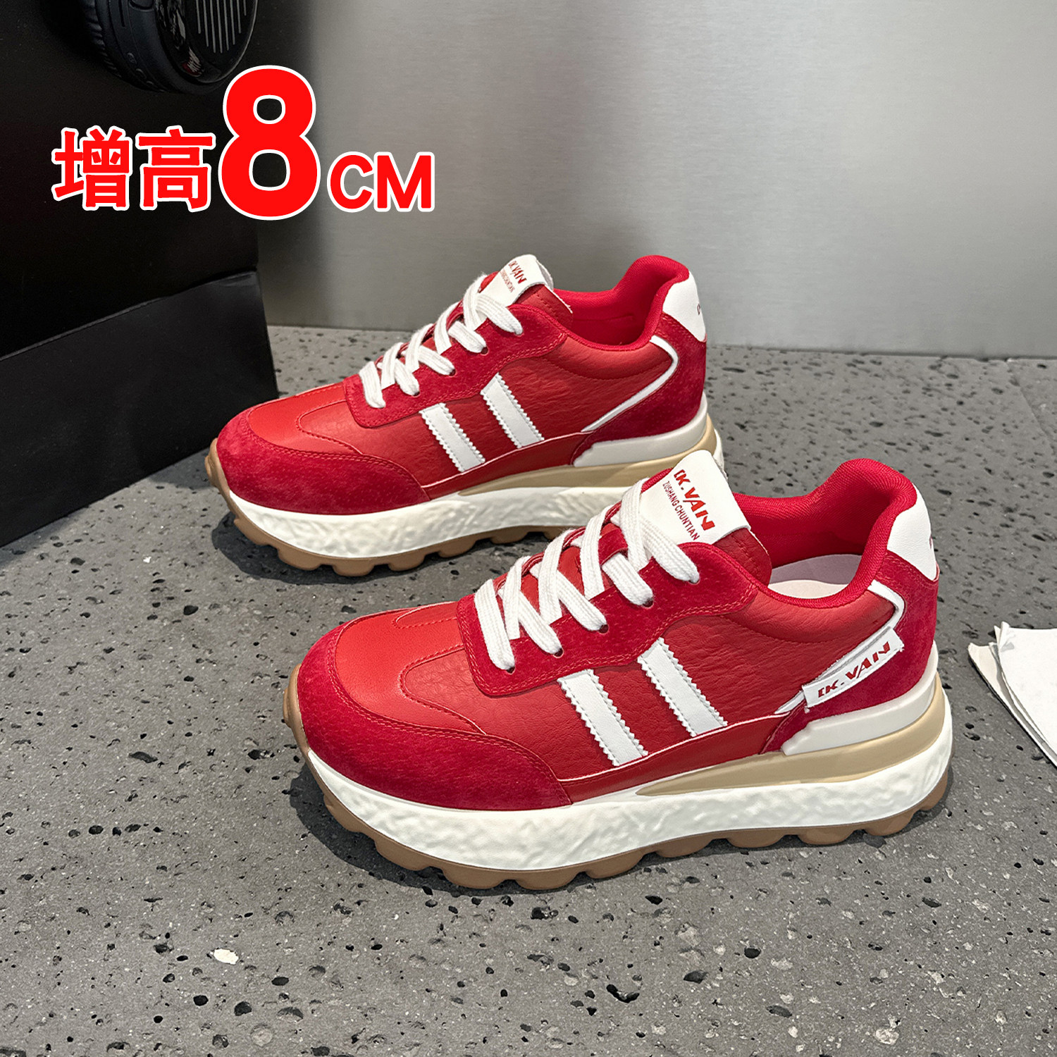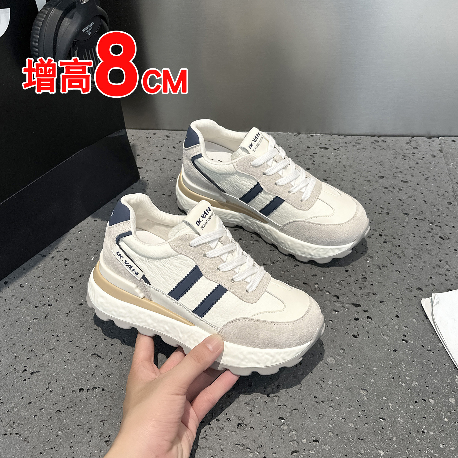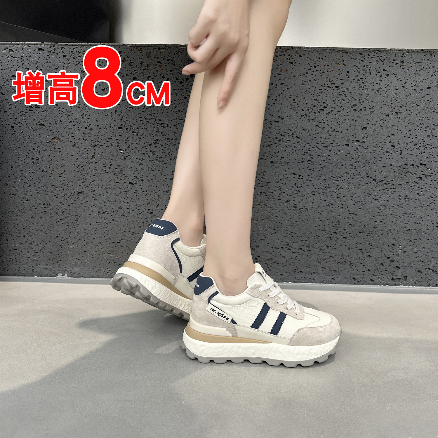 运动厚底鞋女小个子8cm轻便舒适2026春季新款内增高老爹鞋女鞋子