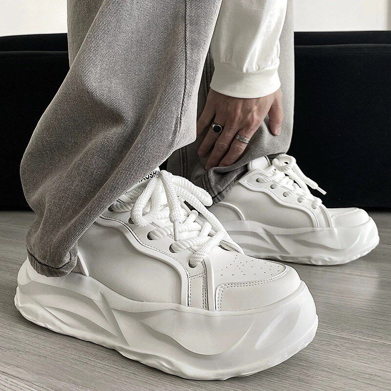 2025新款厚底小白鞋内增高男春秋冬季运动休闲潮流面包松糕老爹鞋
