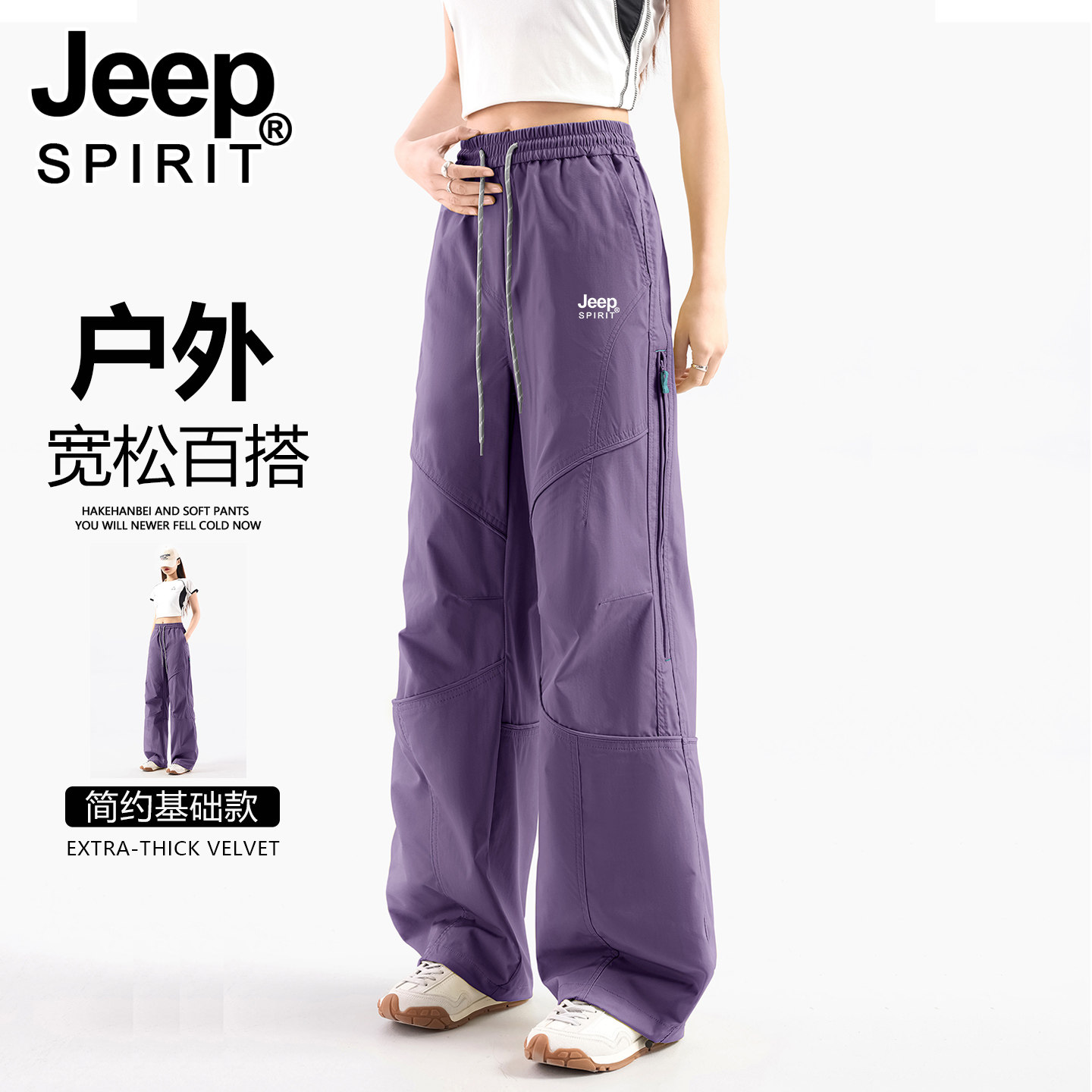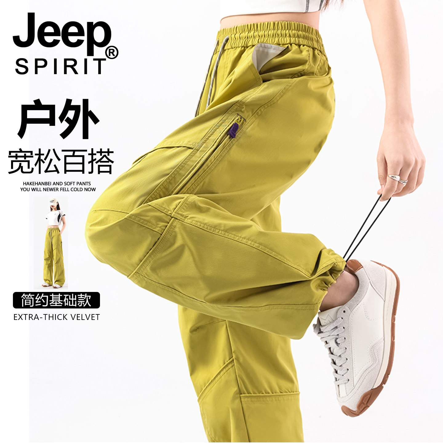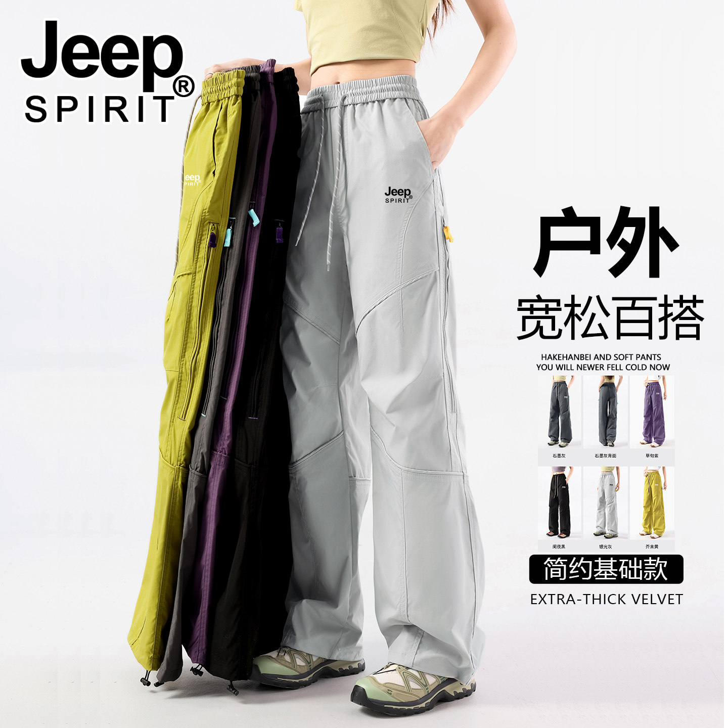 JEEP冲锋裤子女款春秋伞兵运动防风登山裤2026新款夏季速干工装裤