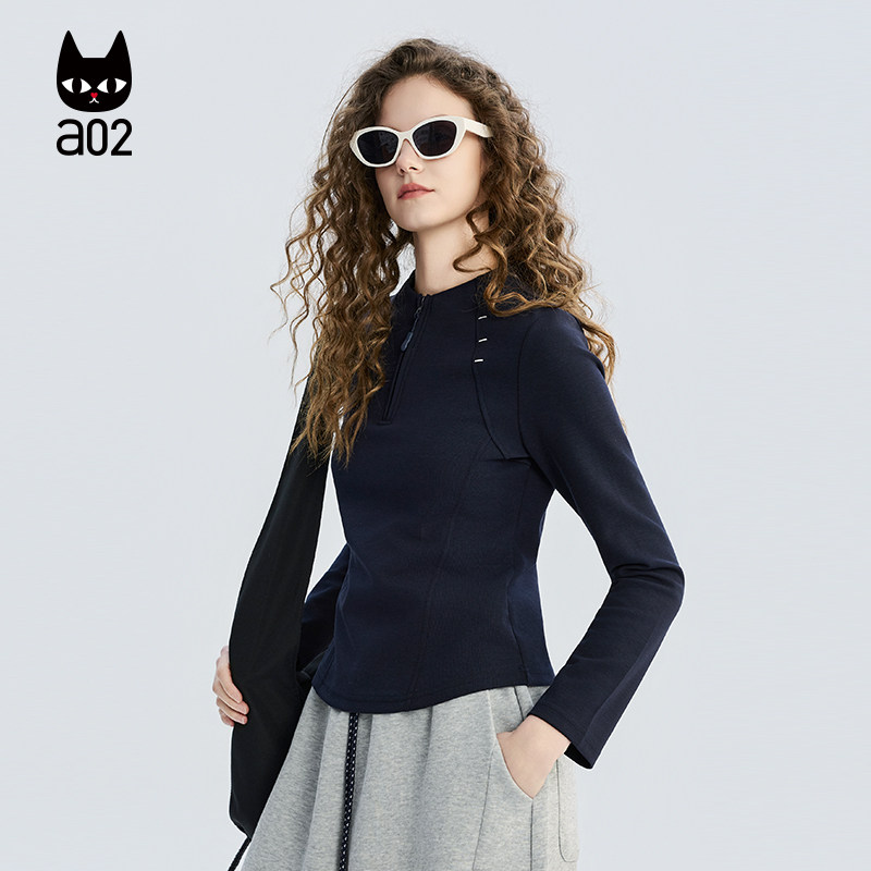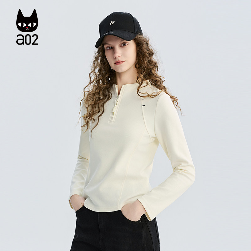 a02修身立领长袖T恤女款2026新款春秋套头打底衫内搭上衣通勤穿搭