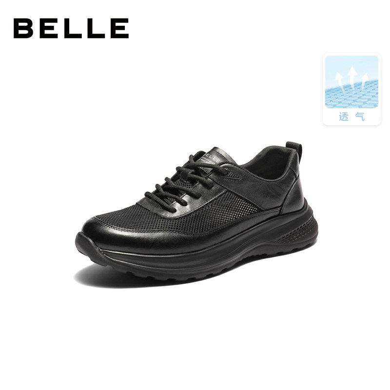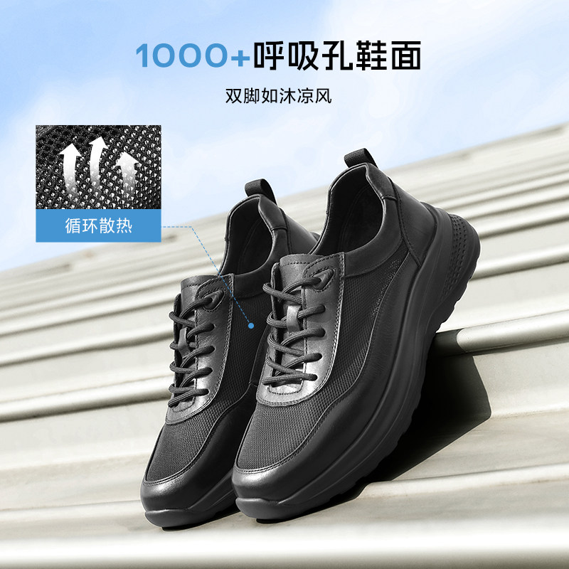 百丽男鞋网面透气厚底增高商务健步鞋男士款夏通勤运动鞋子A1354