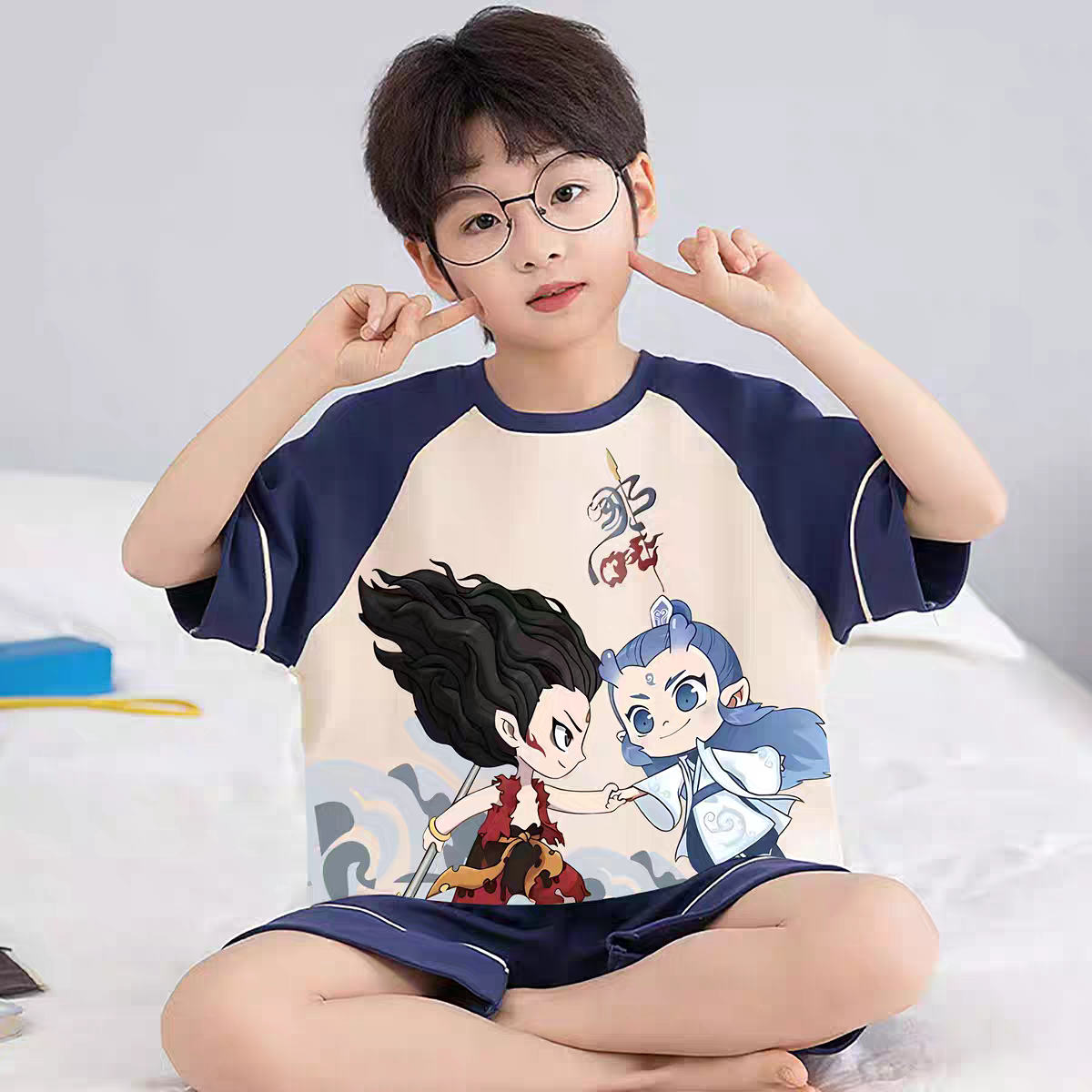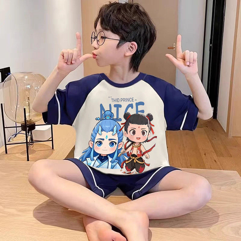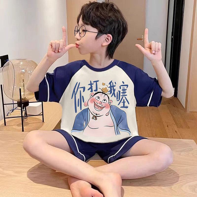 全棉纯棉2026夏季新款男童睡衣短袖短裤纯棉儿童男孩青少年大