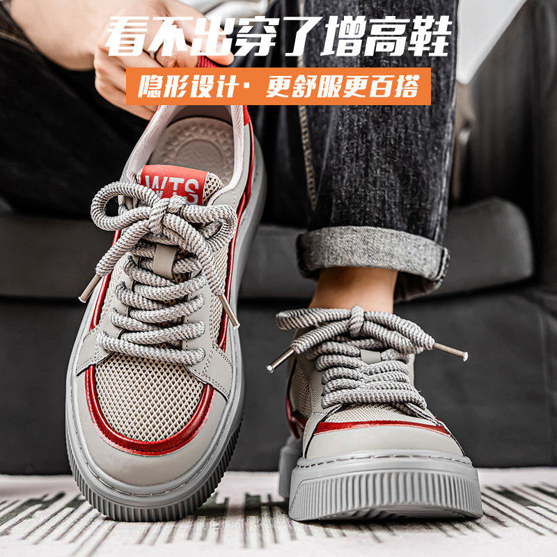 男鞋夏季透气网面薄款休闲百搭板鞋男士内增高软底运动轻便潮鞋子