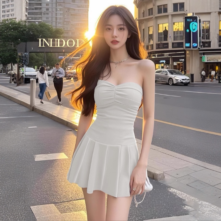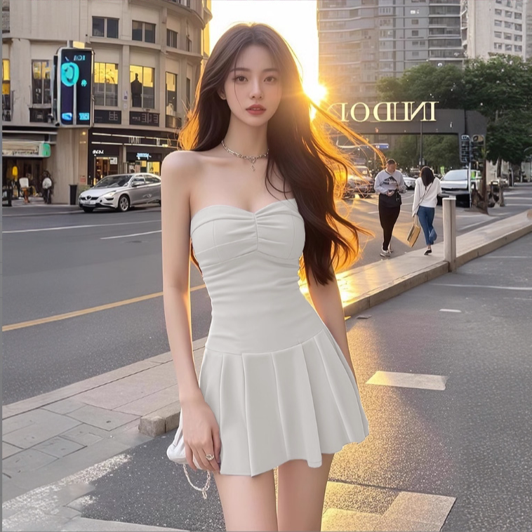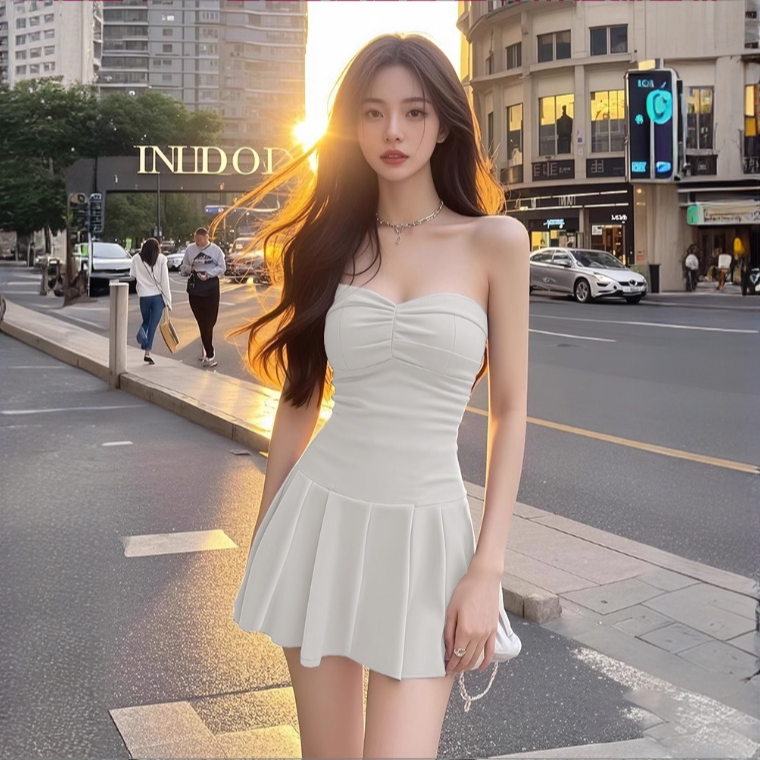 2026新款夏季抹胸白色连衣裙气质优雅显瘦a字裙高级感短款裙子女