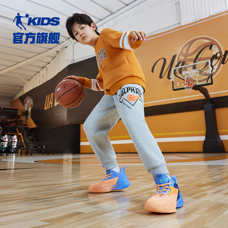 乔丹童鞋男童篮球鞋2026春秋新款大童实战耐磨战靴皮面儿童运动鞋