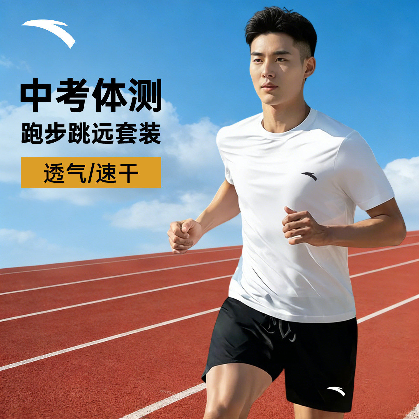 安踏跑步套装男款夏季新款短袖短裤中考体育运动服体测训练速干衣