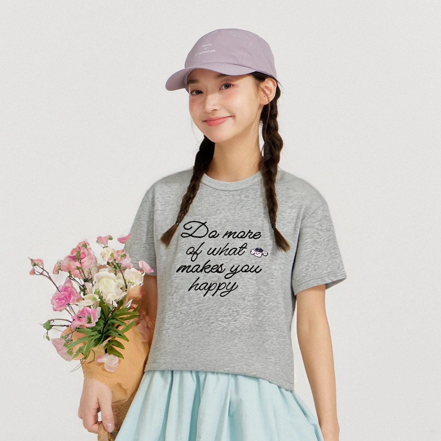 笛莎官旗青少年2026夏季新款初高中女生亲子绣花结合短袖T恤上衣
