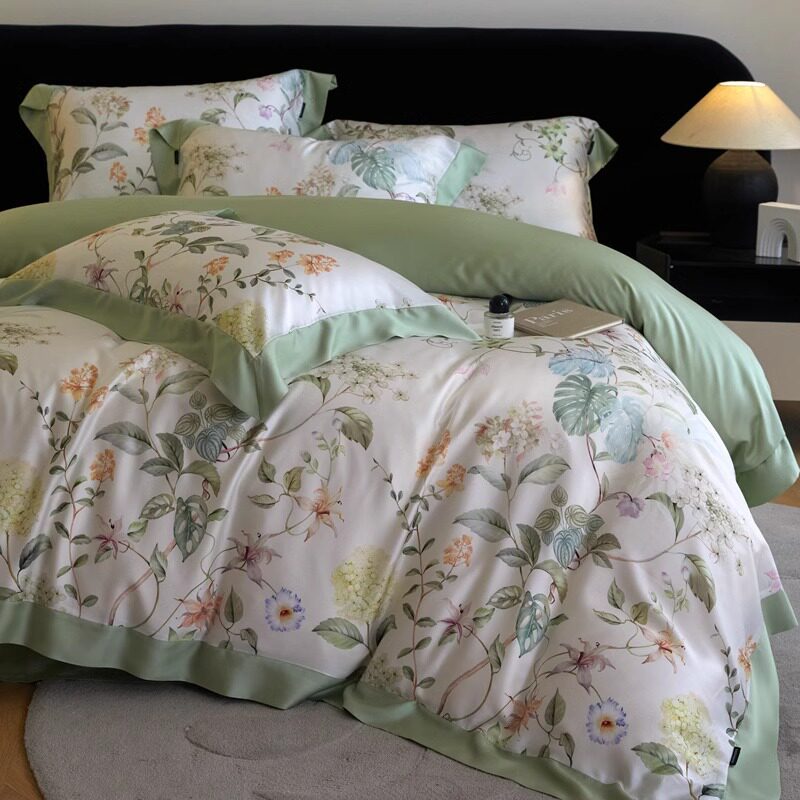 夏季高端美式田园100支兰精天丝四件套凉感冰丝绿色被套床上用品