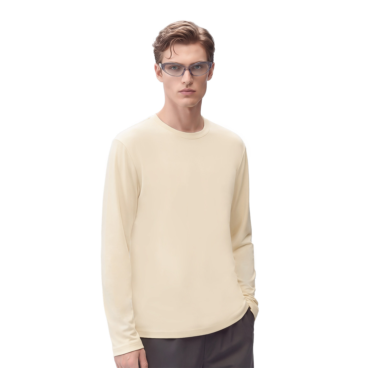 猫人浅米色男士长袖t恤2026新款纯棉打底衫男款春夏季薄款卫衣男Q