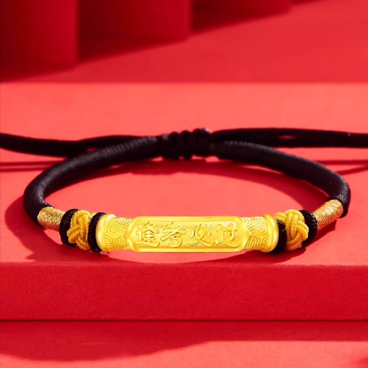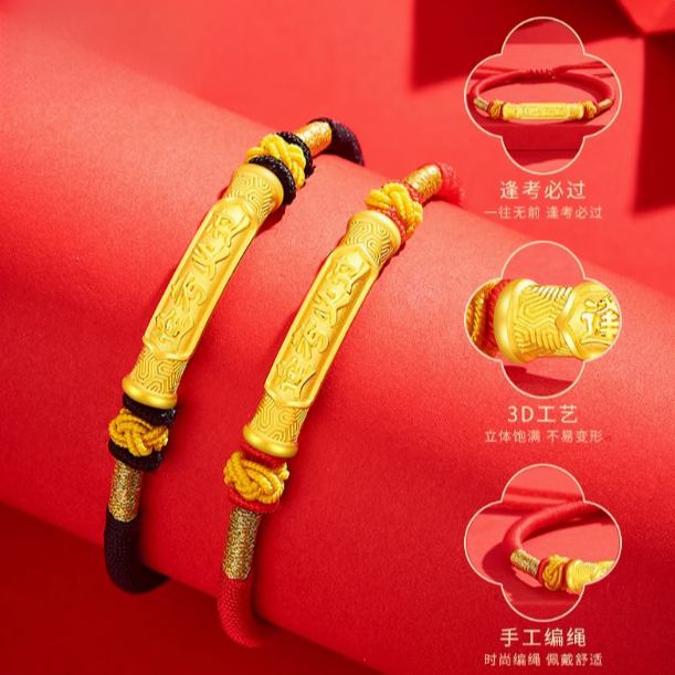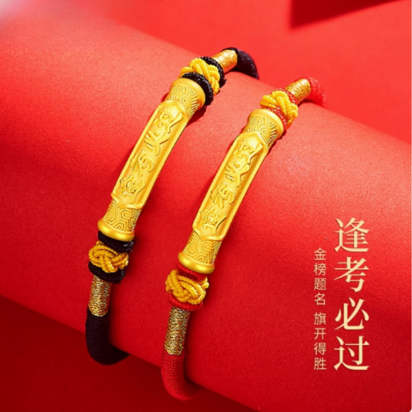 黄金逢考必过手链999足金中高考手绳金榜题名幸运红绳男女同款
