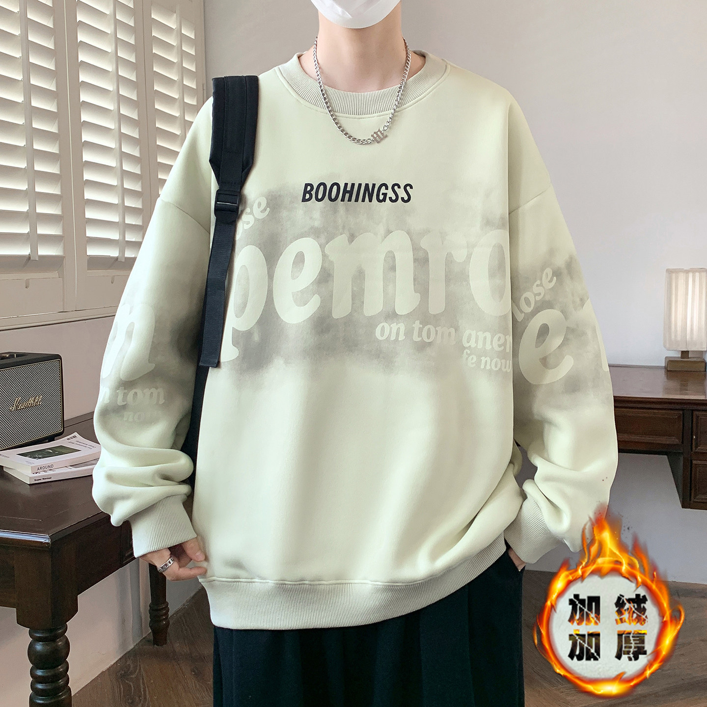 秋冬装圆领卫衣男孩初中学生加绒加厚青少年帅气大童打底衫上衣服