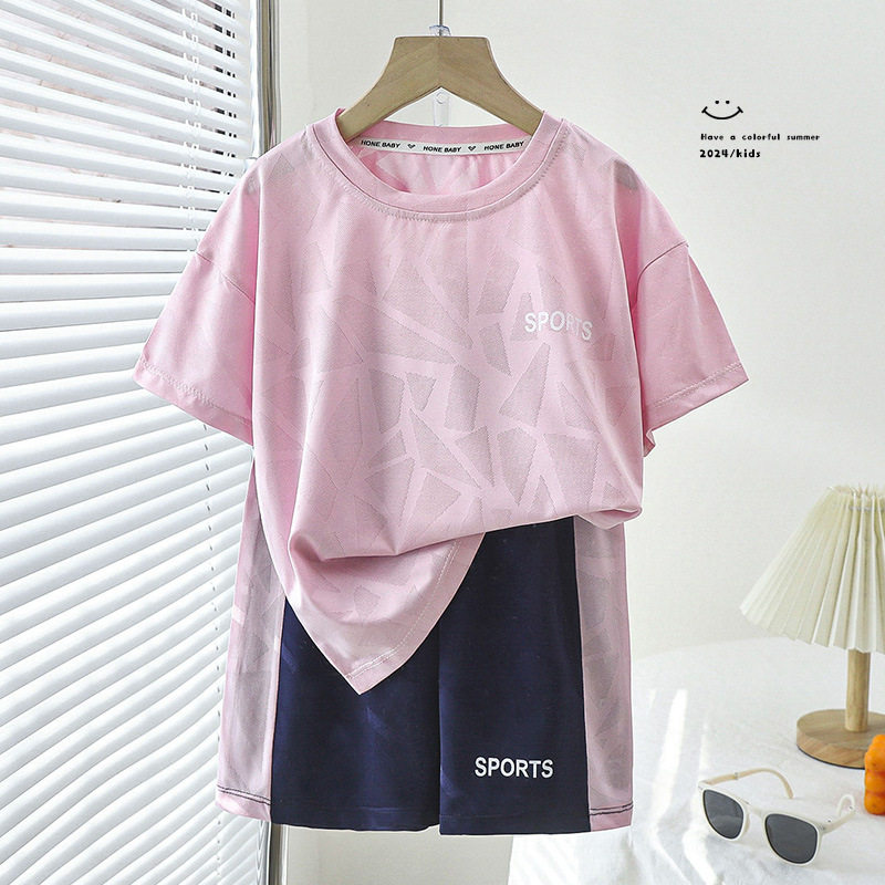 儿童短袖短裤速干套装2026夏季透气网眼宝宝运动球服男童女童薄款