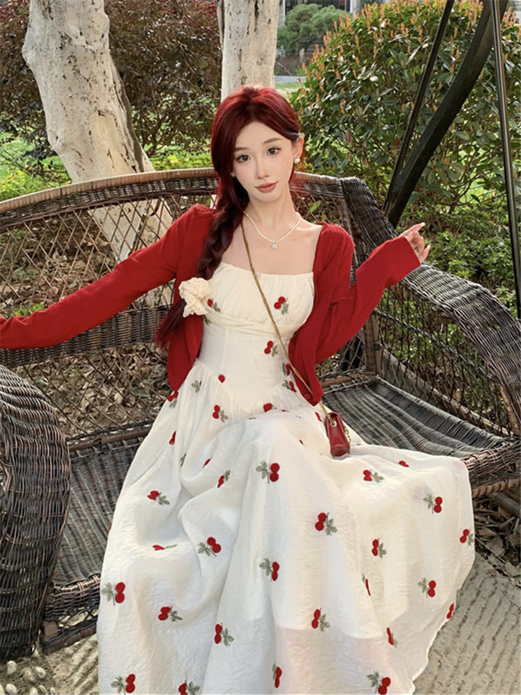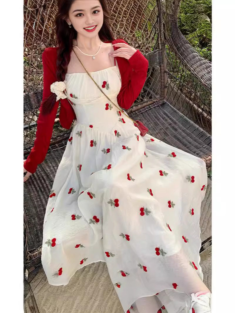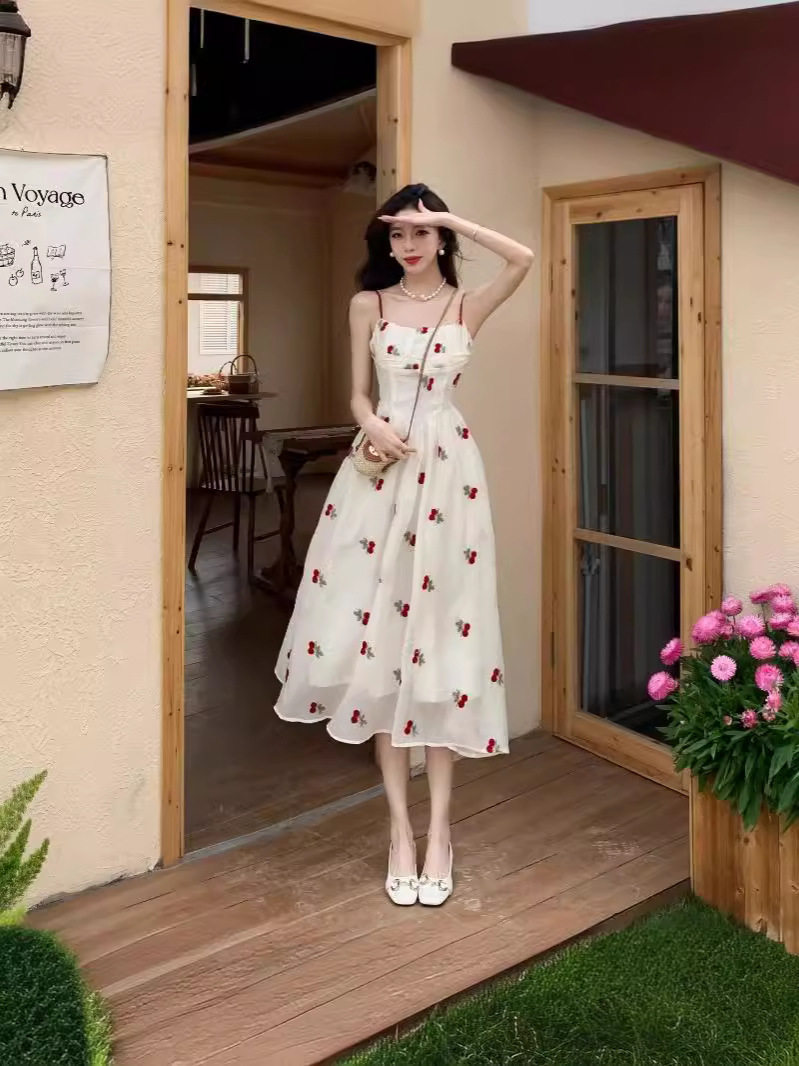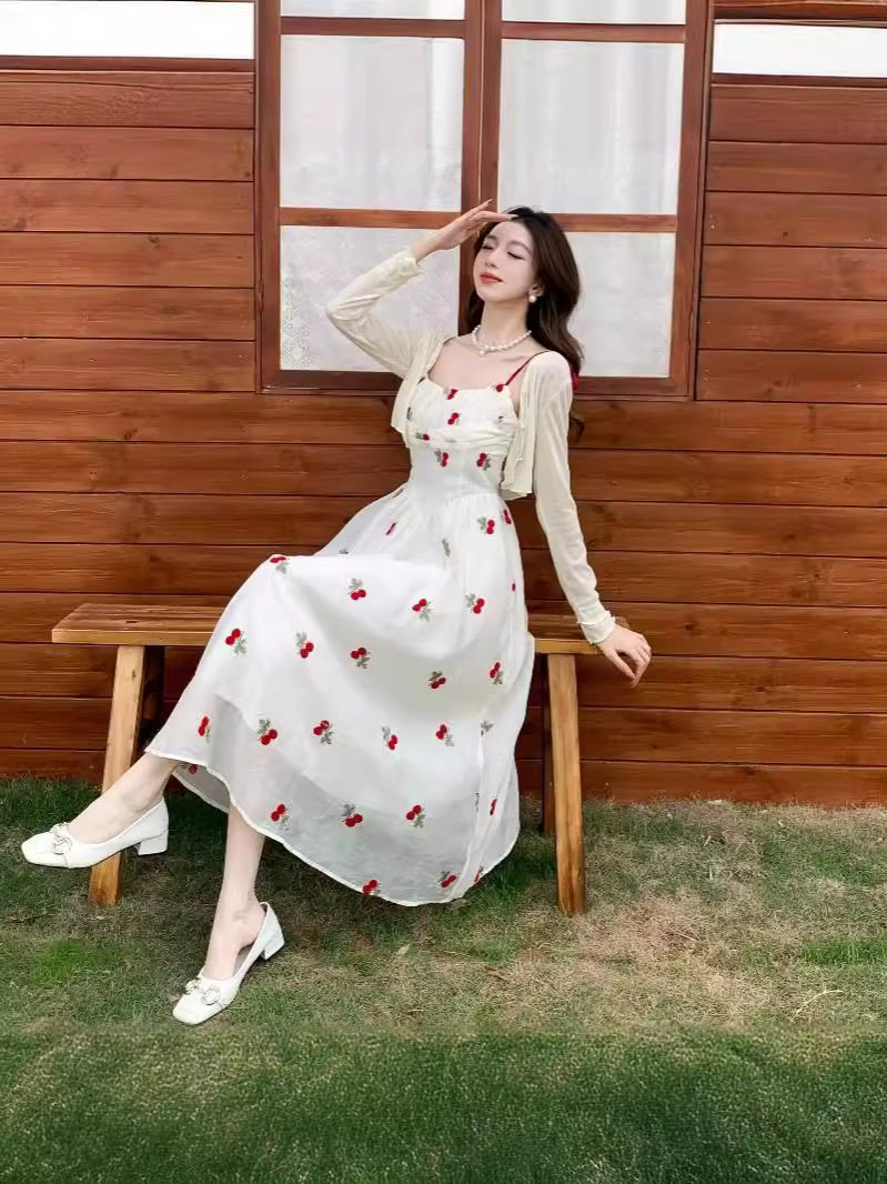 法式抹胸碎花外搭吊带连衣裙女夏季新款微胖显瘦茶歇小个子长裙子
