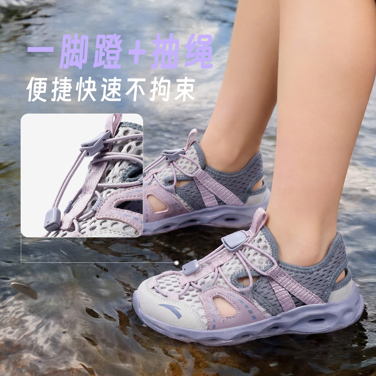 安踏儿童女小童凉鞋溯溪沙滩鞋2026年夏季新款防滑包头运动凉鞋潮