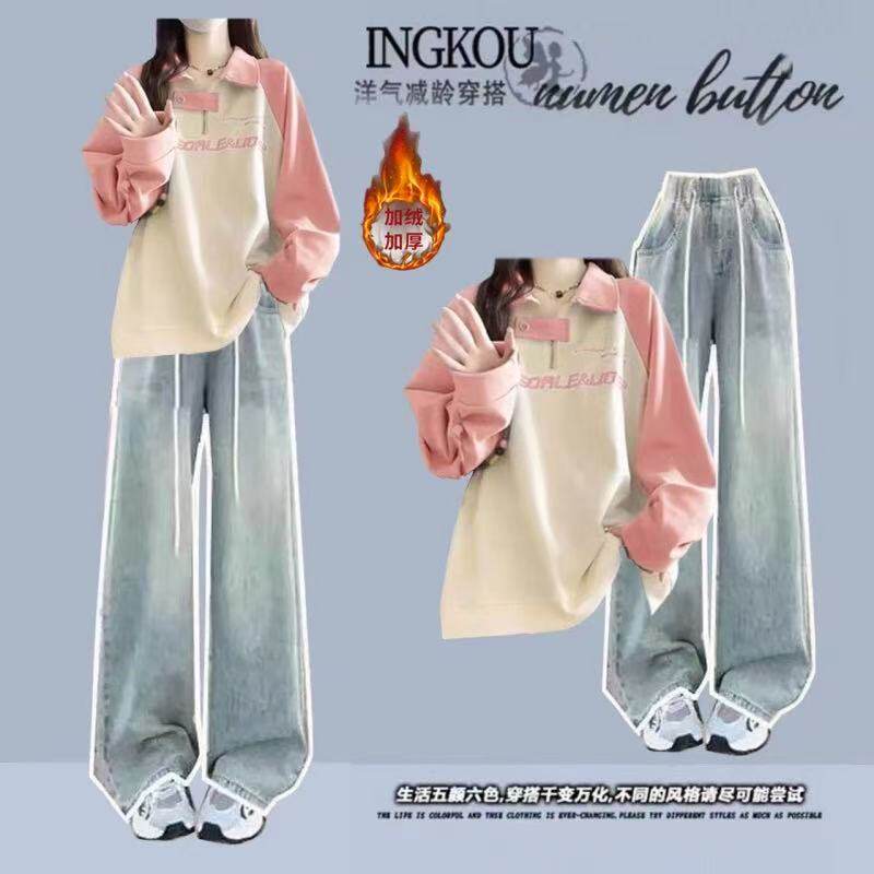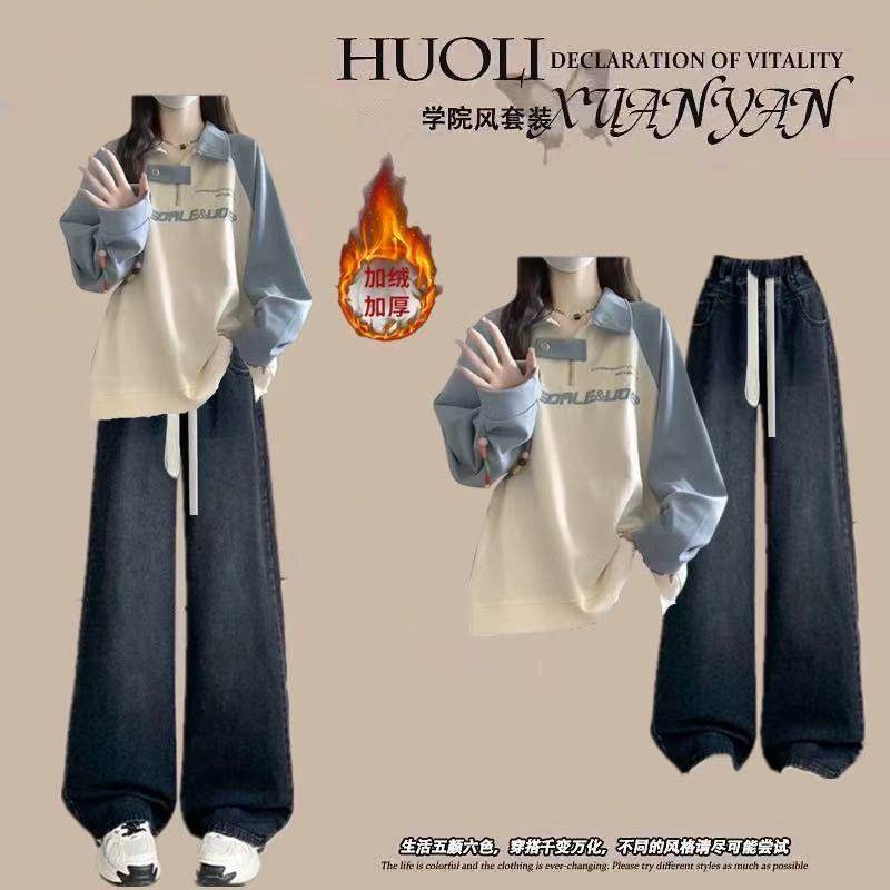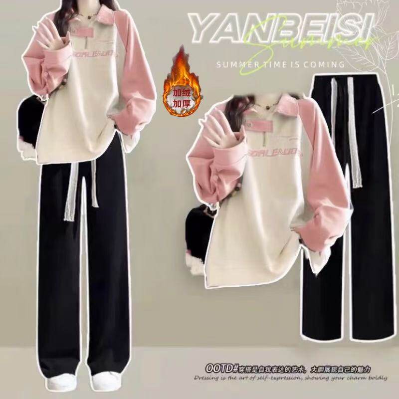 青少年女装初中学生搭配一整套少女高中生加绒加厚卫衣女两件套装