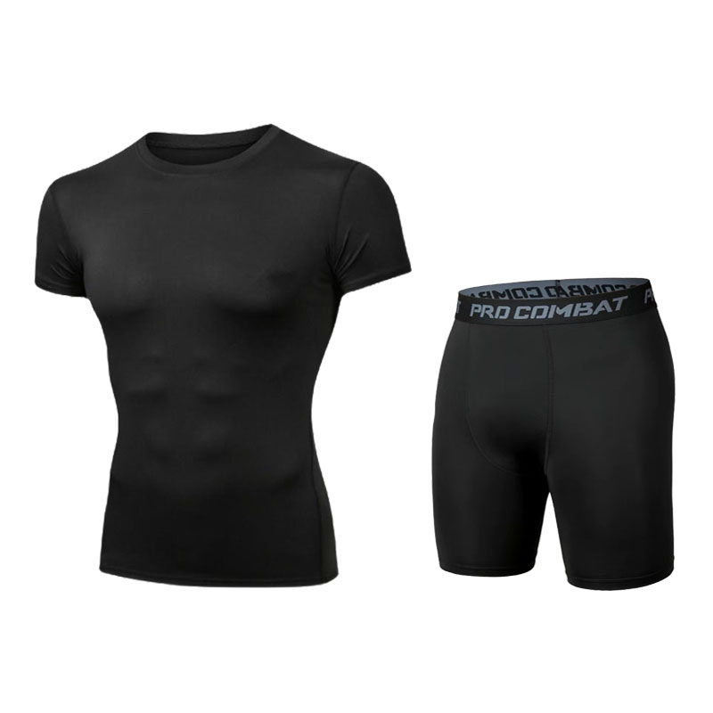 健身衣服运动紧身短袖短裤速干透气高弹压缩篮球足球跑步训练上衣