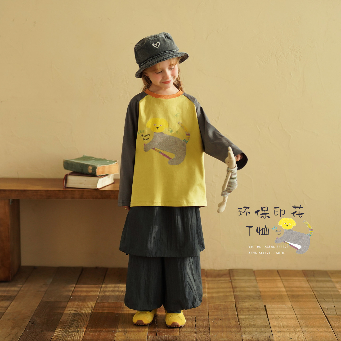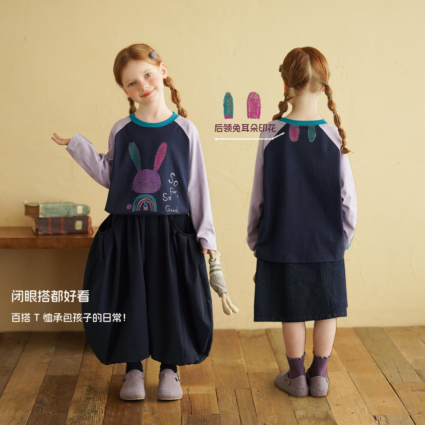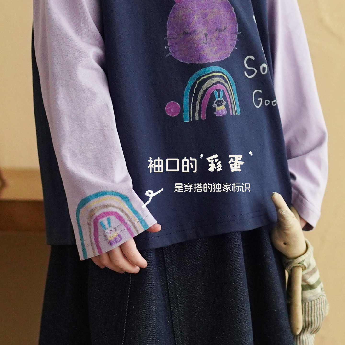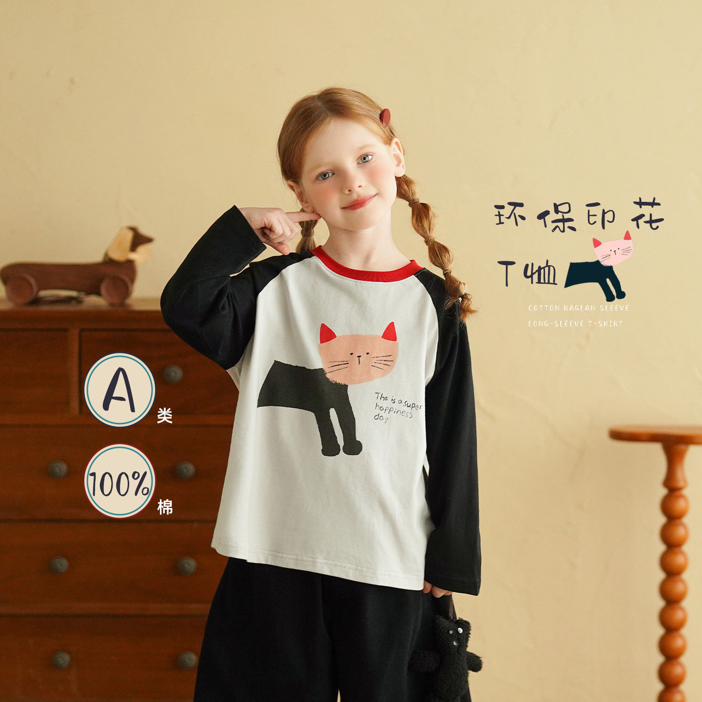 砚台家女童长袖T恤原创插画2026春装新款儿童薄款纯棉插肩袖上衣