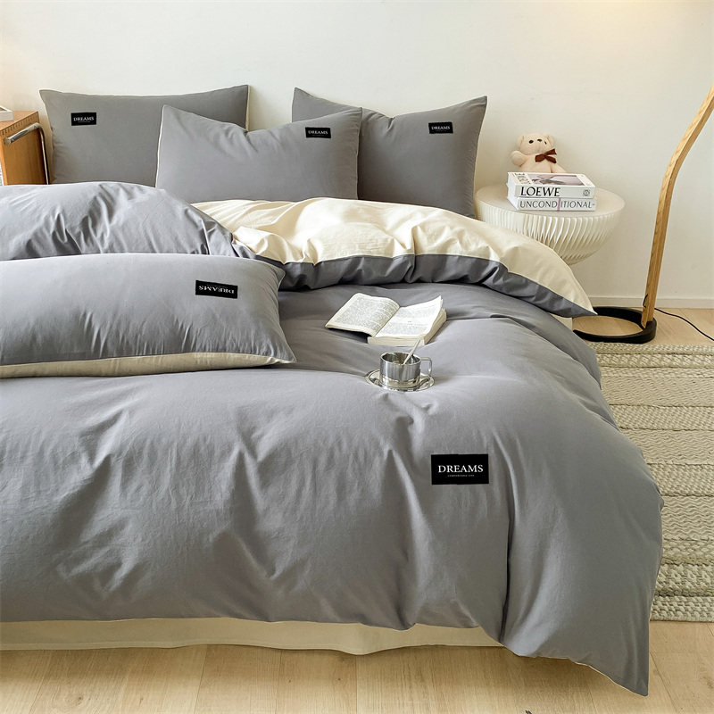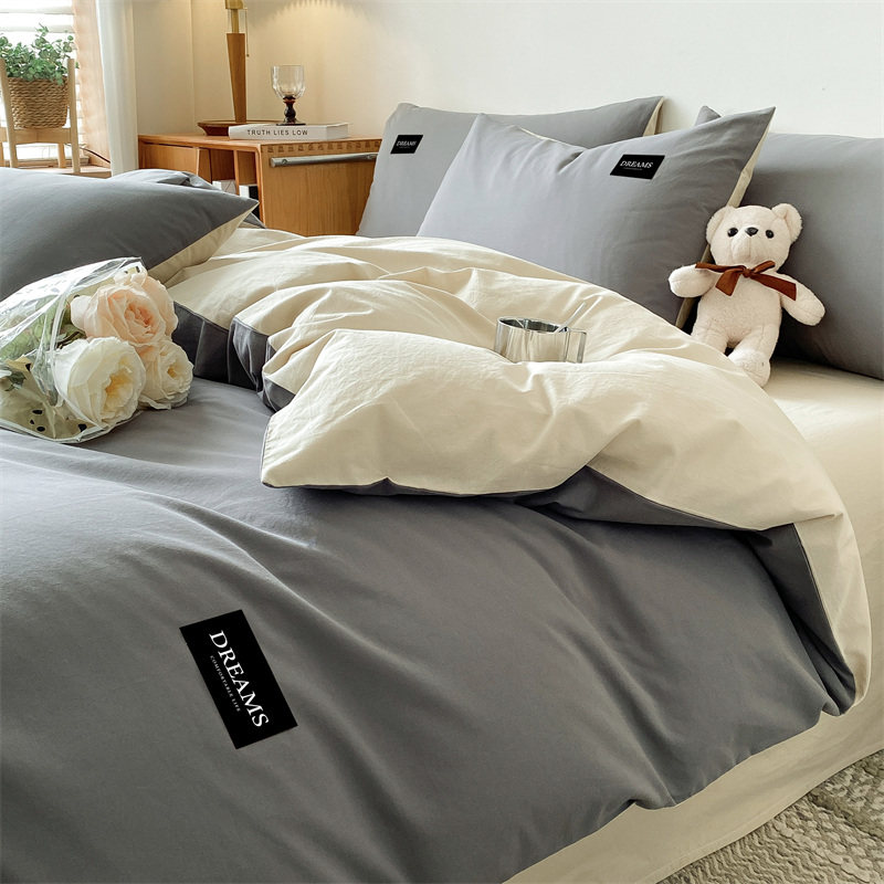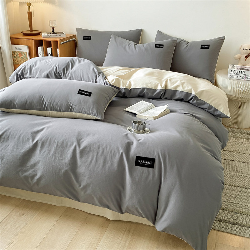 2026新款13372纯色双拼全棉纯棉四件套