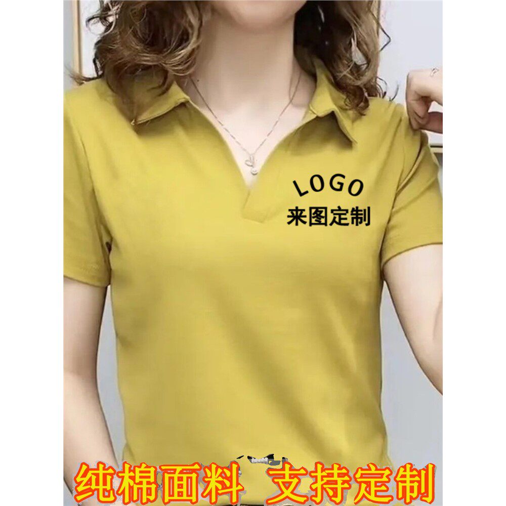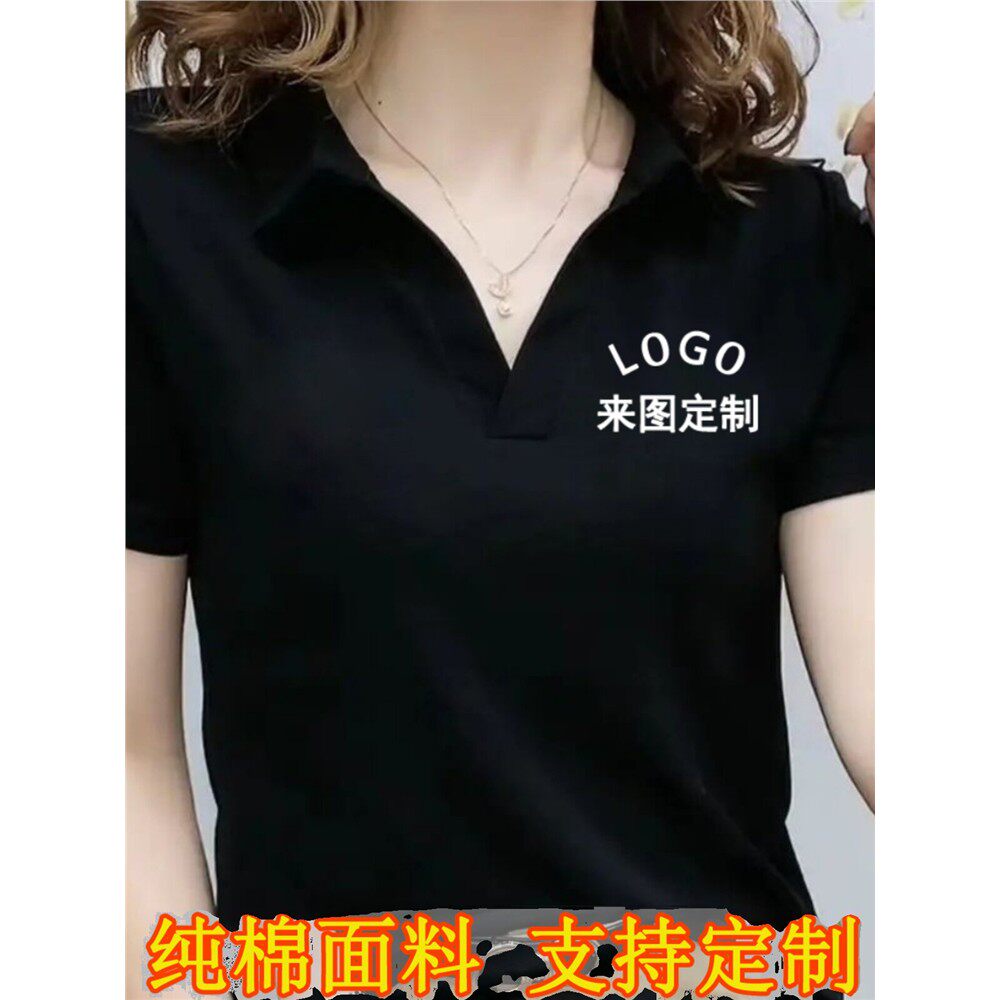 定制短袖翻领t恤纯棉广告衫文化衫定做餐饮服务员工作服印字LOGO