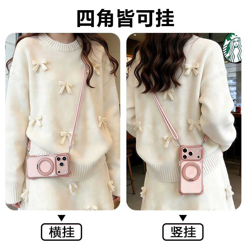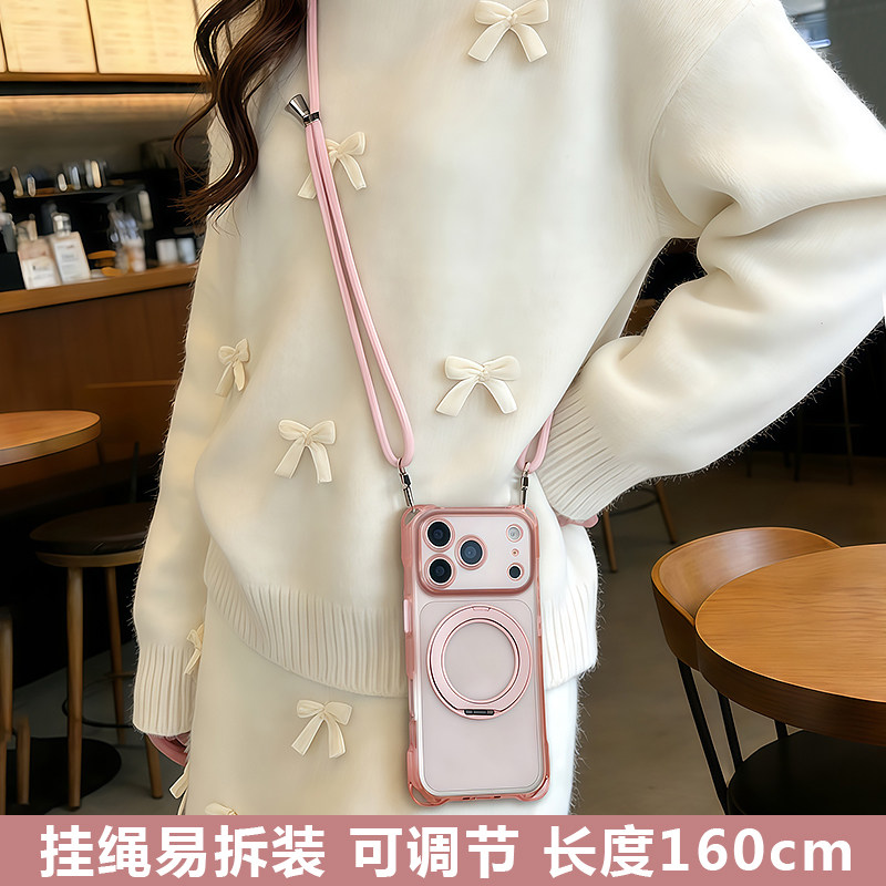 适用苹果16promax手机壳斜挎带挂绳iPhone17pro新款保护套支架14pro新年15plus防摔磁吸13可背脖子12马2026