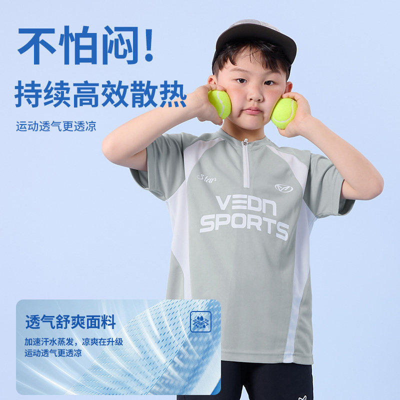 维动儿童速干短袖训练服男童运动跑步透气篮球比赛宽松舒适上衣
