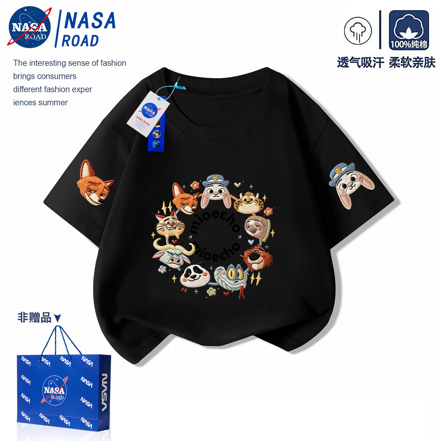 NASA疯狂动物城儿童短袖t恤2026夏季新款男童半袖女童纯棉上衣服