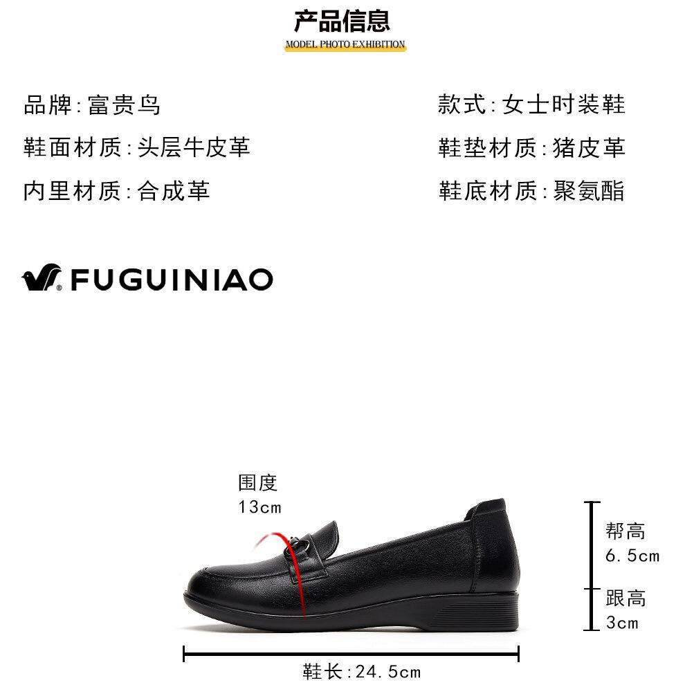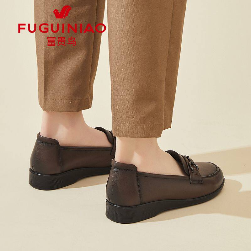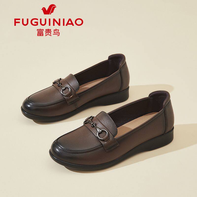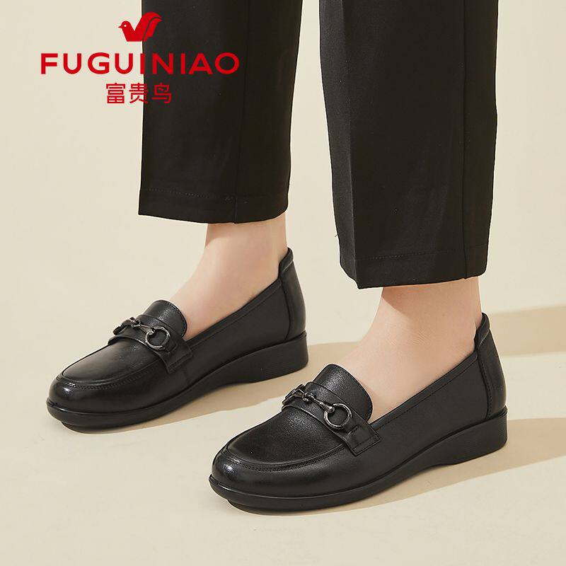 富贵鸟真皮乐福鞋女款2026新款春季单鞋一脚蹬软底坡跟豆豆鞋皮鞋